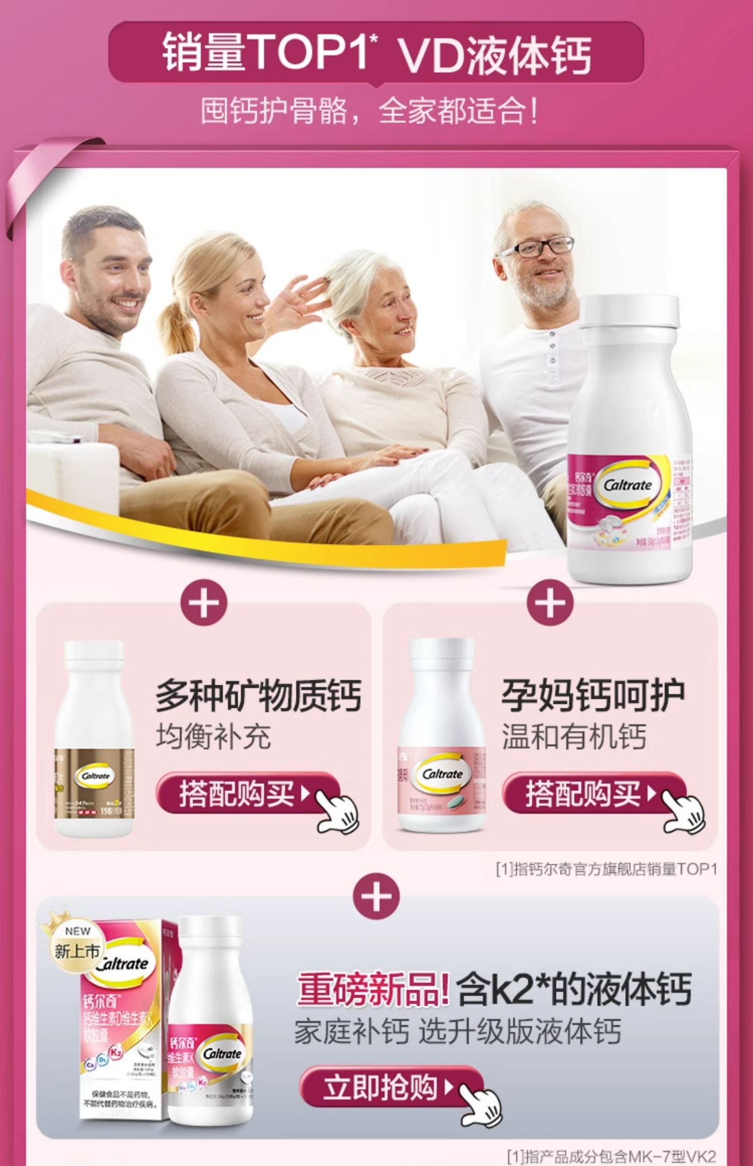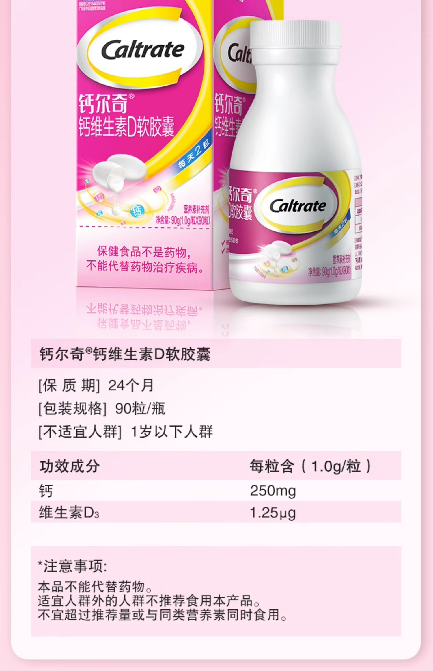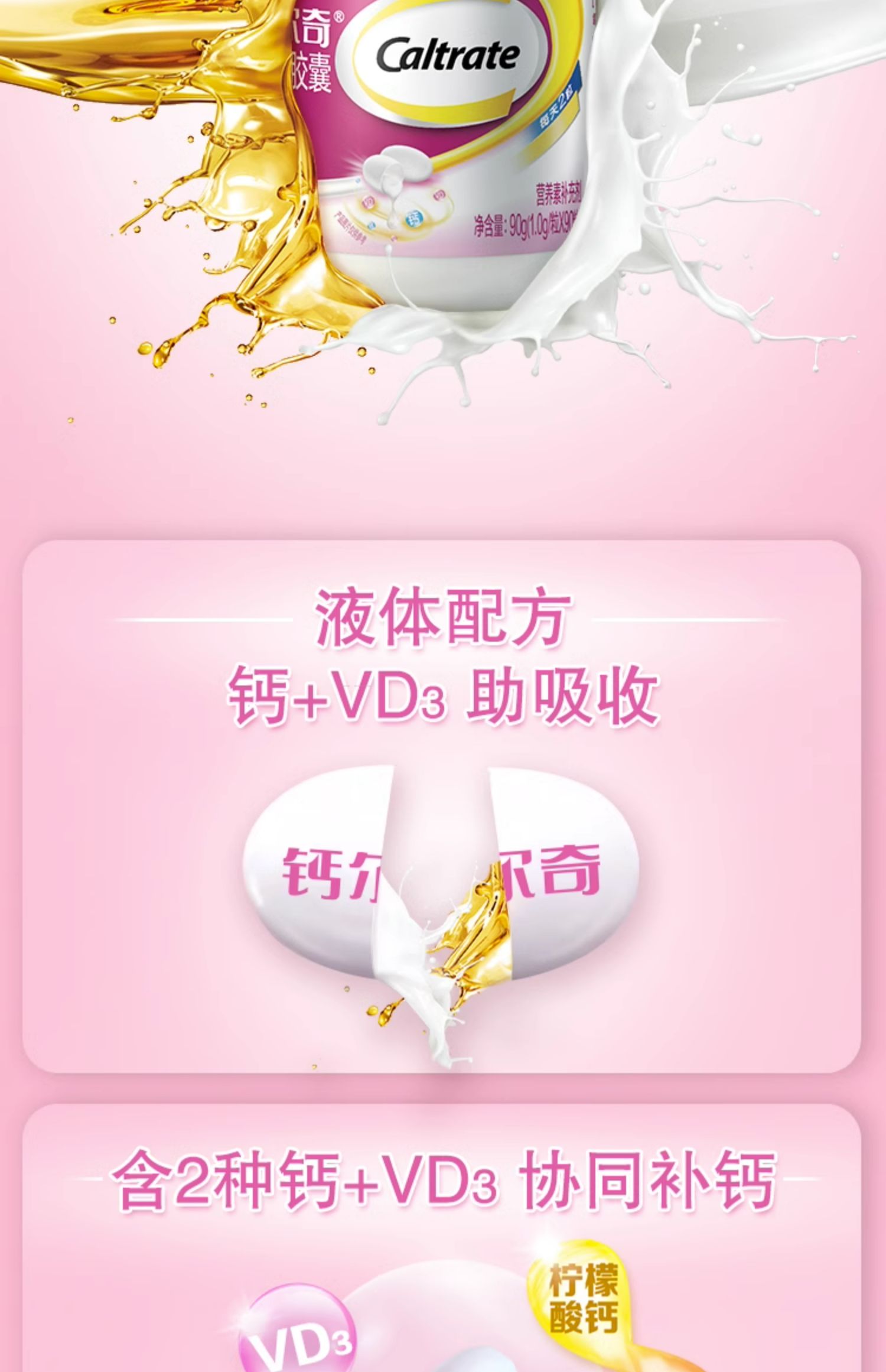 商品名称:钙尔奇液体钙维生素d软胶囊柠檬酸钙中老年女性儿童补钙官方正品