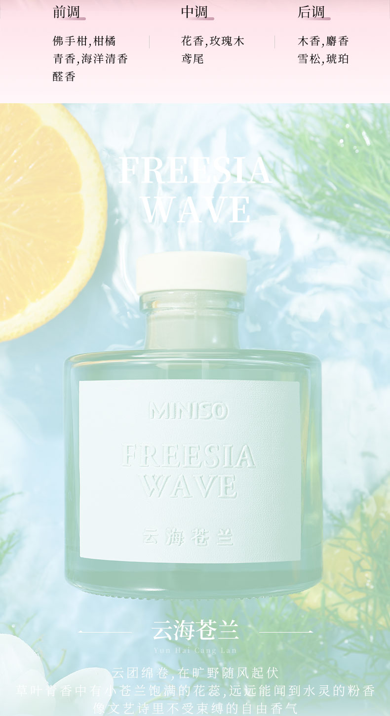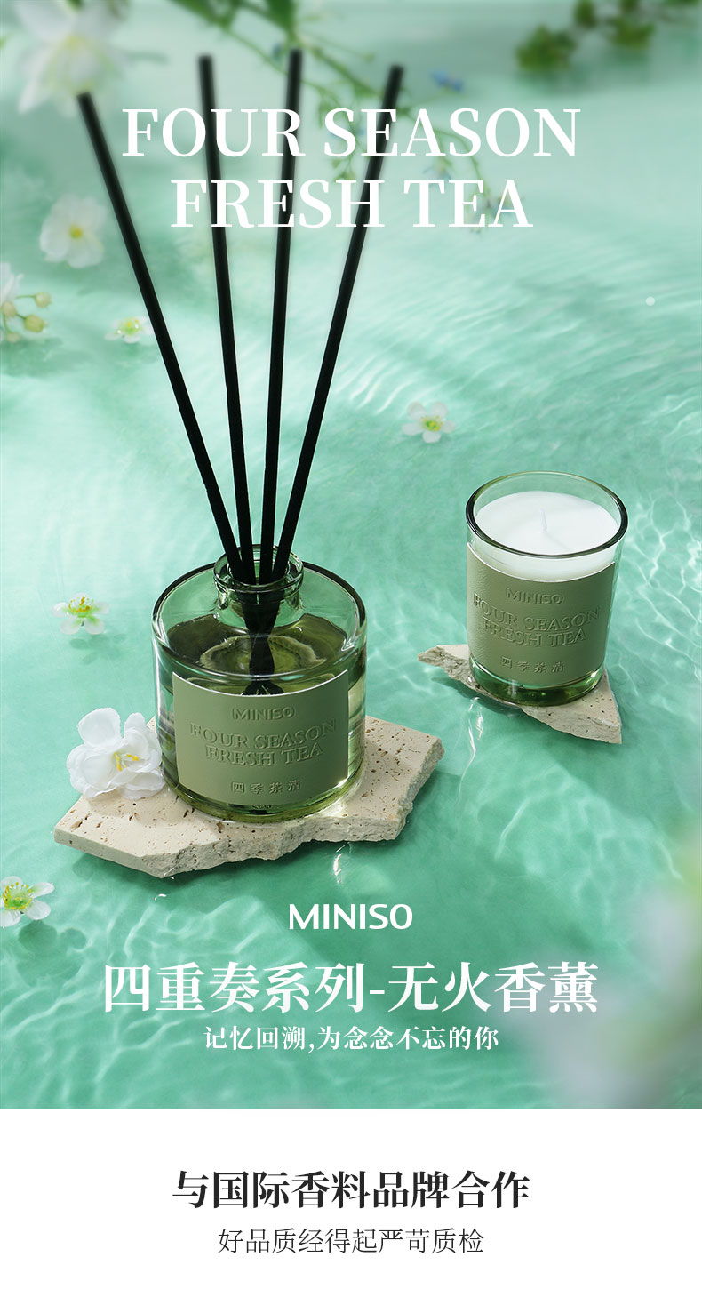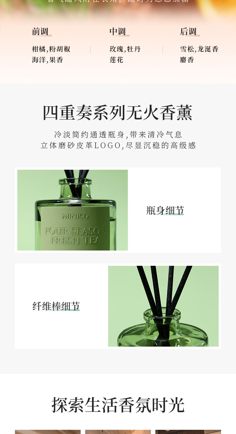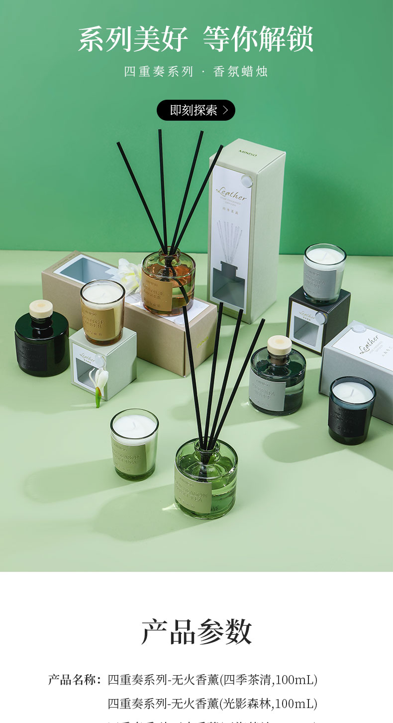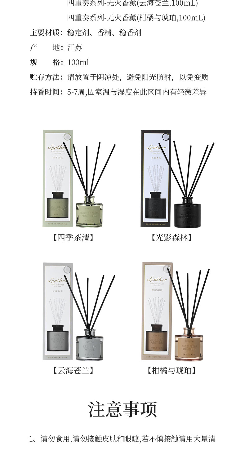 商品简介:名创优品四重奏无火香薰100ml持久香氛家用。