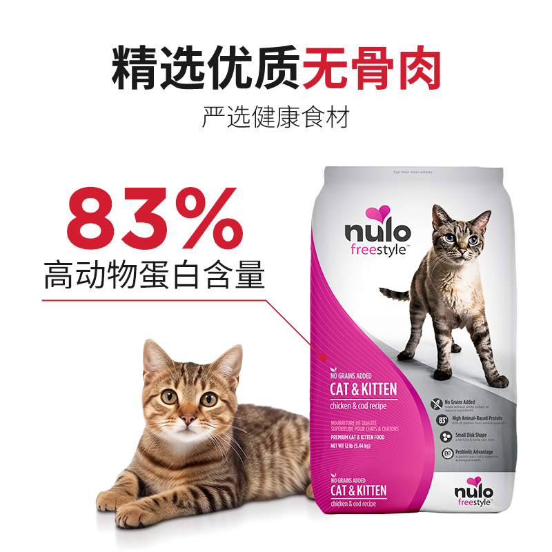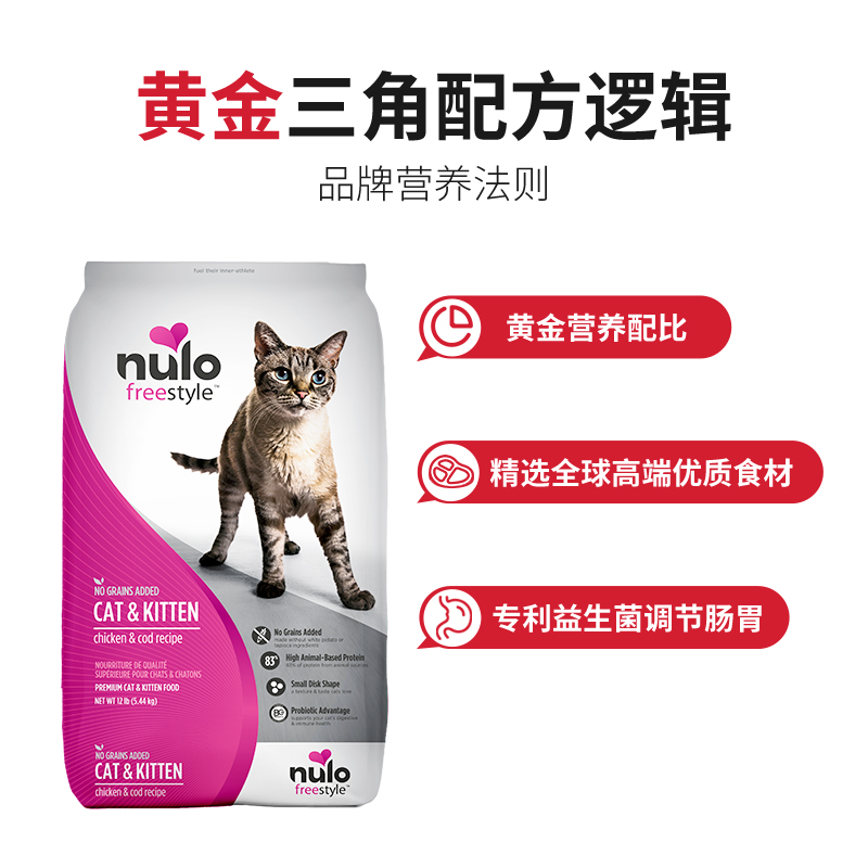 商品名称:【自营】Nulo高蛋白成猫幼猫猫粮鸡肉鳕鱼12磅5.44kg效期至25.4月
