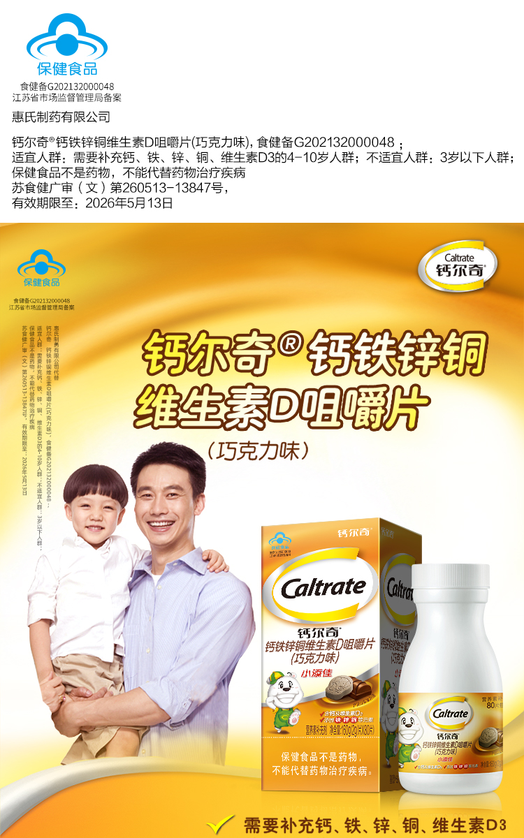 商品介绍:钙尔奇小添佳咀嚼片(巧克力味)80片