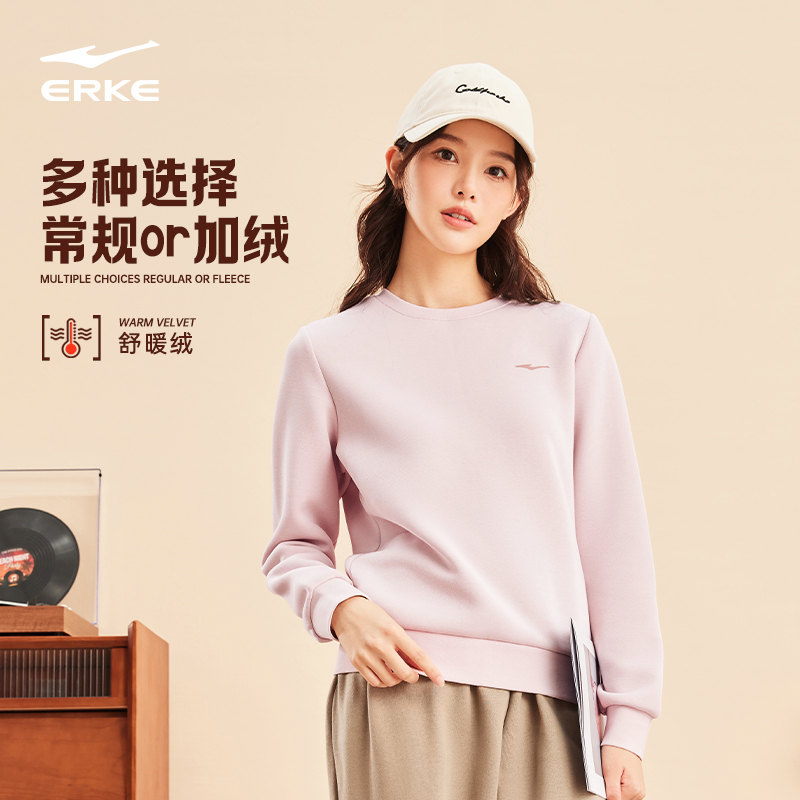 商品名称:鸿星尔克卫衣女2024秋冬新款女士女款运动加绒长袖圆领上衣女装