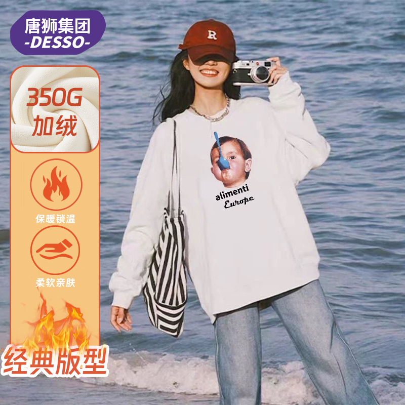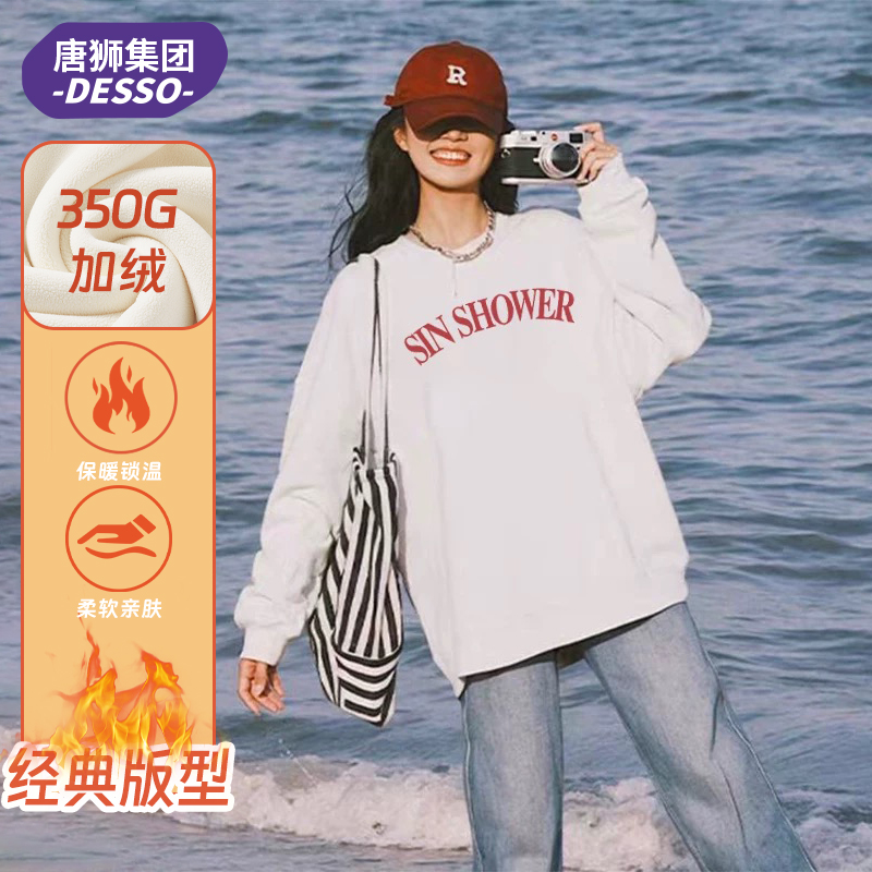 商品名称:唐狮集团DESSO350g重磅加绒加厚卫衣秋冬季港风内搭宽松休闲情侣