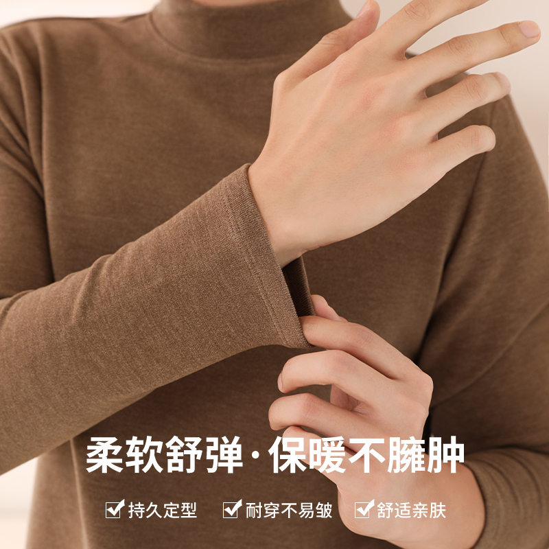 商品名称:雅鹿2024秋冬季新款长袖t恤男半高领双面绒商务休闲德绒打底衫男