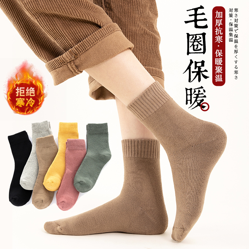 商品名称:品答加厚毛圈袜中长筒拉毛雪地袜子男女中筒冬季纯色保暖毛巾袜子