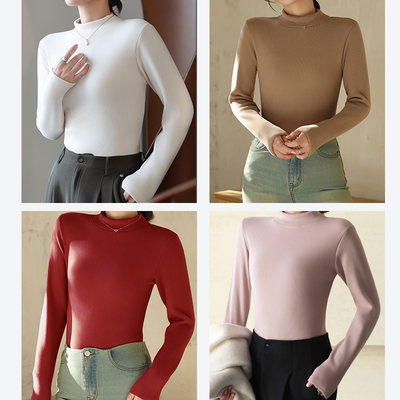 商品简介:(大牌芬腾品牌)本命年红色加绒打底衫新款秋冬内搭可外。加绒加厚蚕丝羊毛打底衫,羊毛蚕丝打底衫女秋冬加绒加厚内搭,德绒中领外穿修身保暖长袖上衣