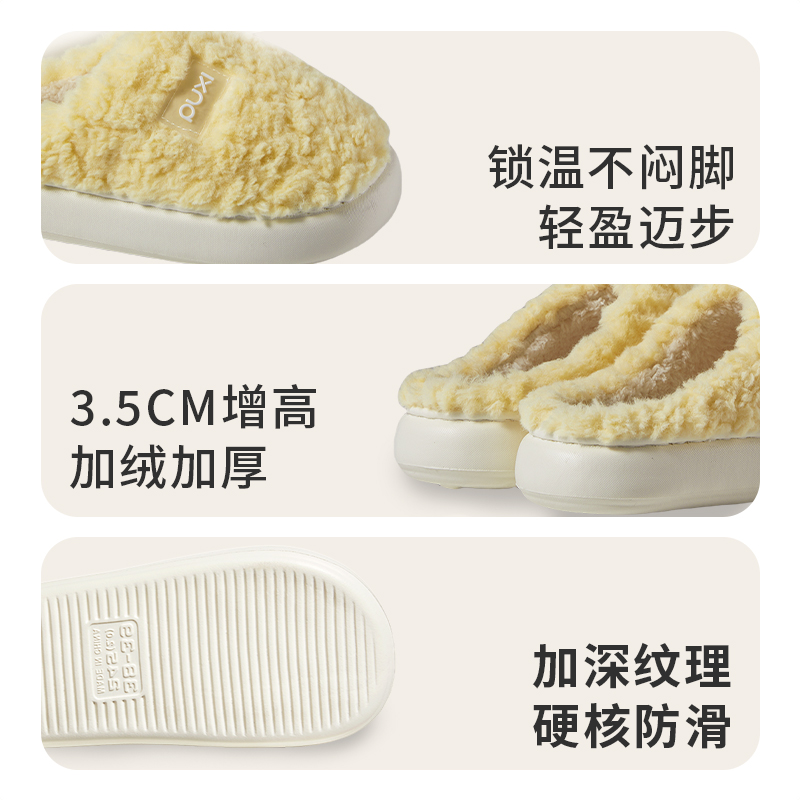 商品简介:【凑单+凑惊喜红包】朴西情侣厚底棉拖鞋,帮面仿羊羔毛卷绒,3.5CM增高,加绒加厚,蓬松厚实,加倍温暖!加深纹理,硬核防滑!材料环保,不掉毛不起球!多色多尺码,快给全家安排上!