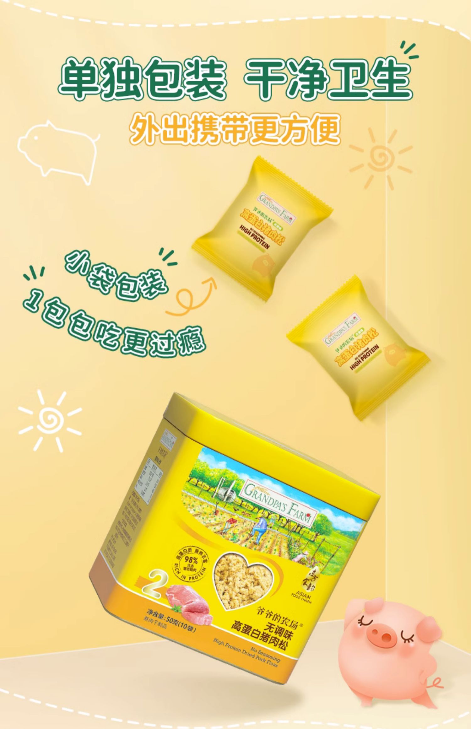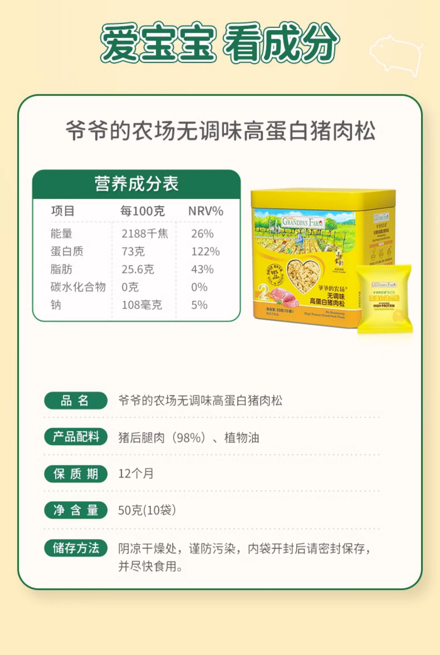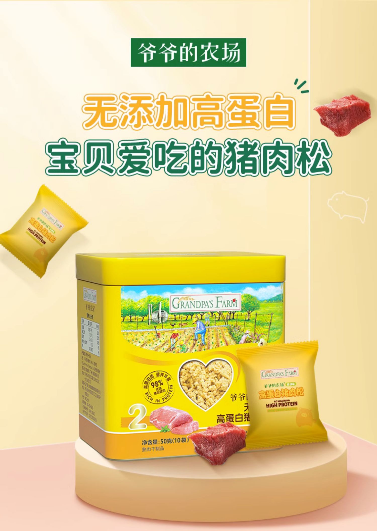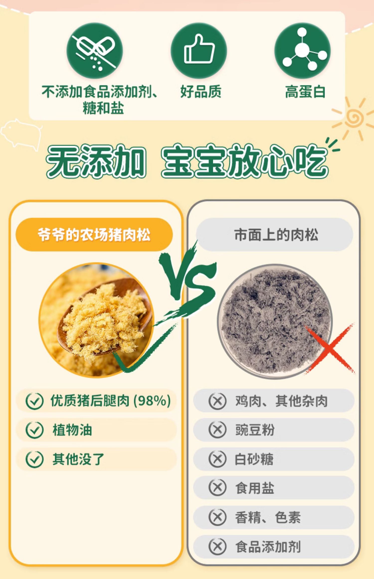 商品名称:爷爷的农场无添加猪肉松牛肉酥拌饭料纯猪肉送宝宝婴幼儿辅食谱