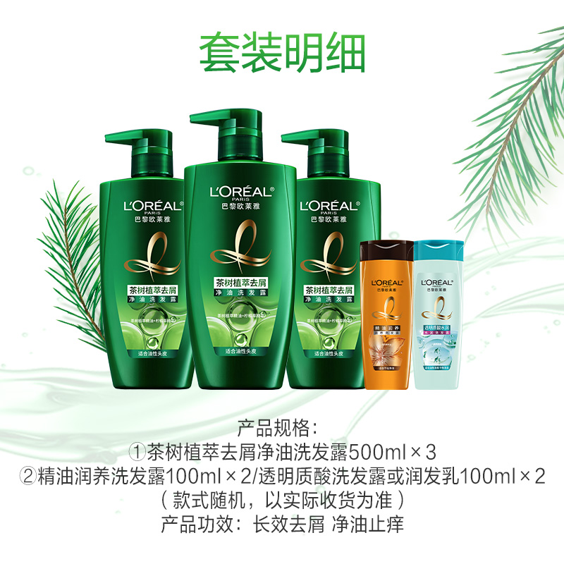 商品名称:欧莱雅绿瓶茶树植萃去头屑控油男女洗发水露持久留香套装官方正品