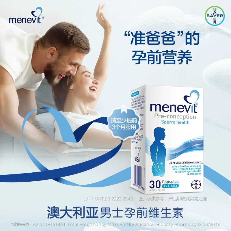 商品名称:Menevit澳洲爱乐维男士备孕胶囊含维生素C叶酸番茄红素锌硒30粒