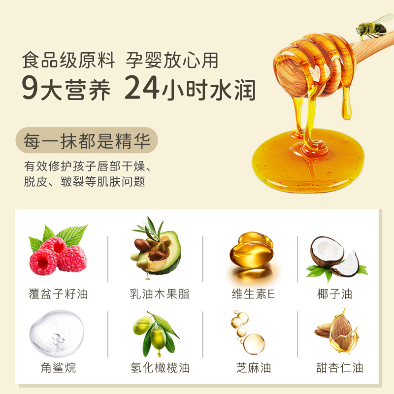 来自保加利亚有机花朵蜂蜜,有机乳木果黄油温和滋润防干裂,等富含维生素a,保湿特性超强。它通常被推荐给敏感皮肤。
