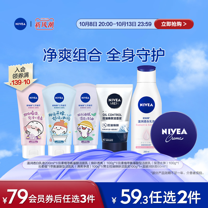 商品名称:【男士护肤任选3件】妮维雅男士洗面奶+沐浴露+面霜男罐润肤霜