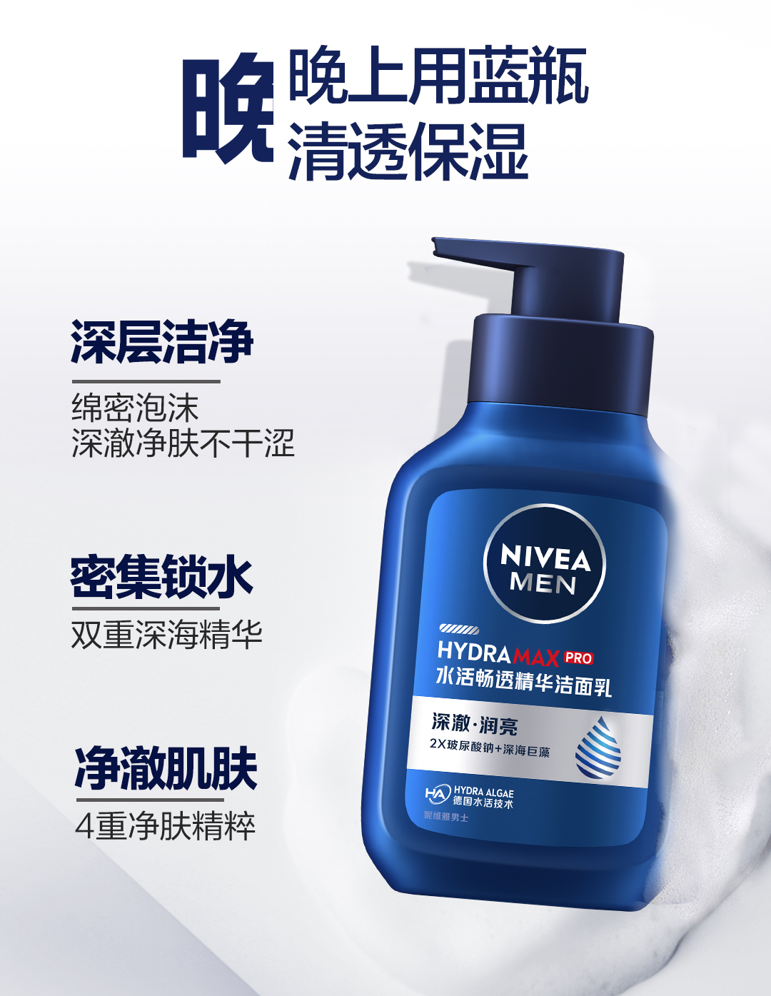 商品简介:【凑单47+赠冰极控油洁面乳50ml*2+水活畅透精华乳10g*2】妮维雅男士洗面奶,深澈洁净,10重功效对抗男士外油内干肤质!清爽温和,迅速起泡,深入毛孔,卷走污垢!【赠运费险