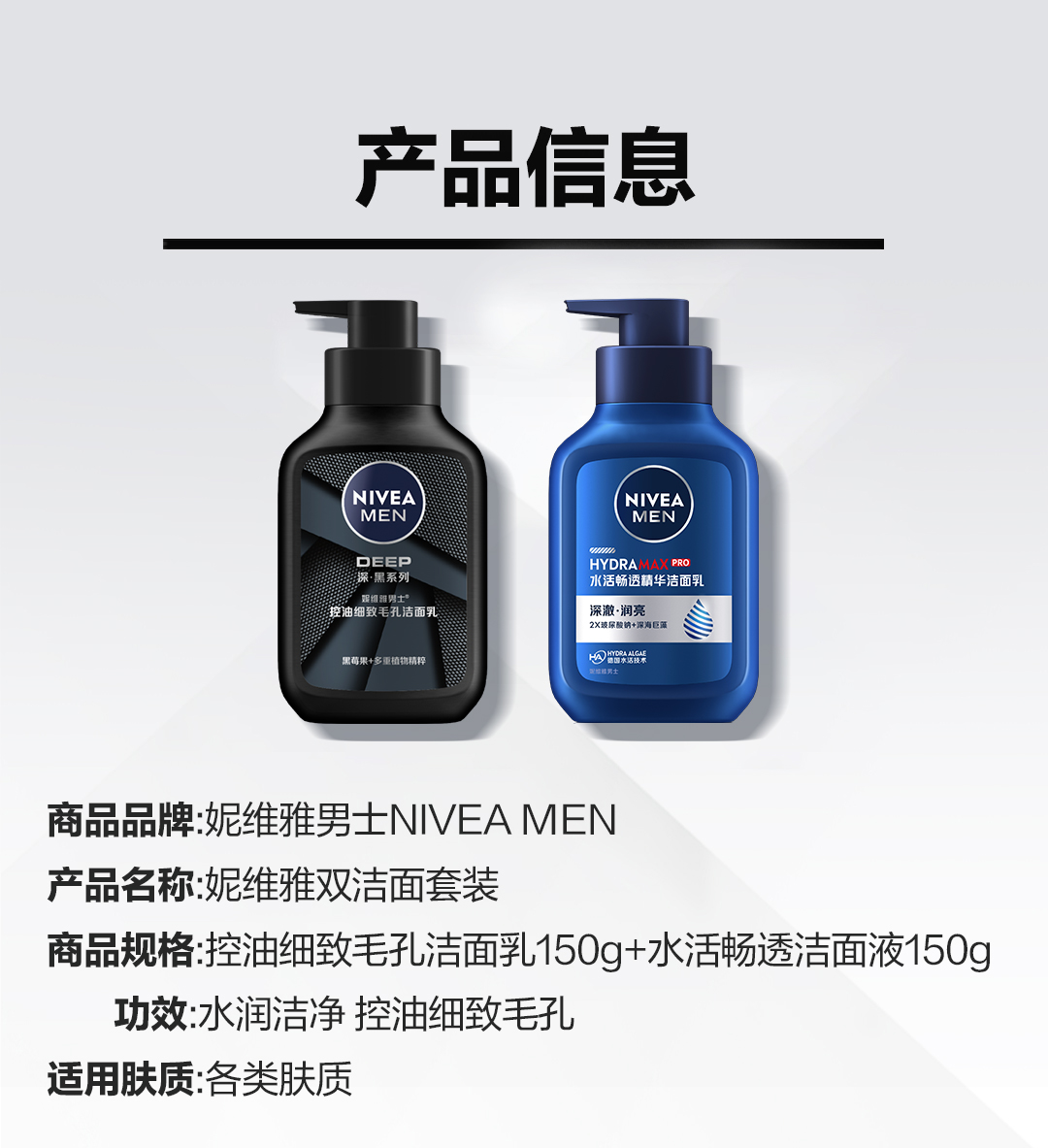 商品名称:妮维雅男士洗面奶深澈洁净控油护肤品清洁肌肤洁面乳套装官方正品