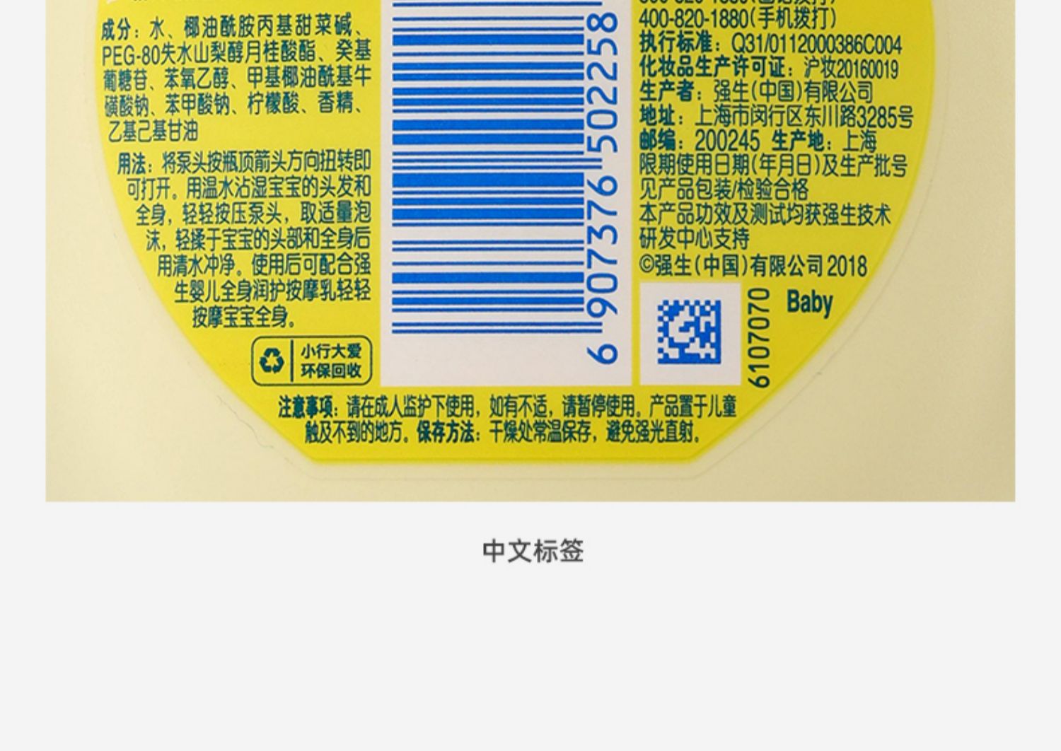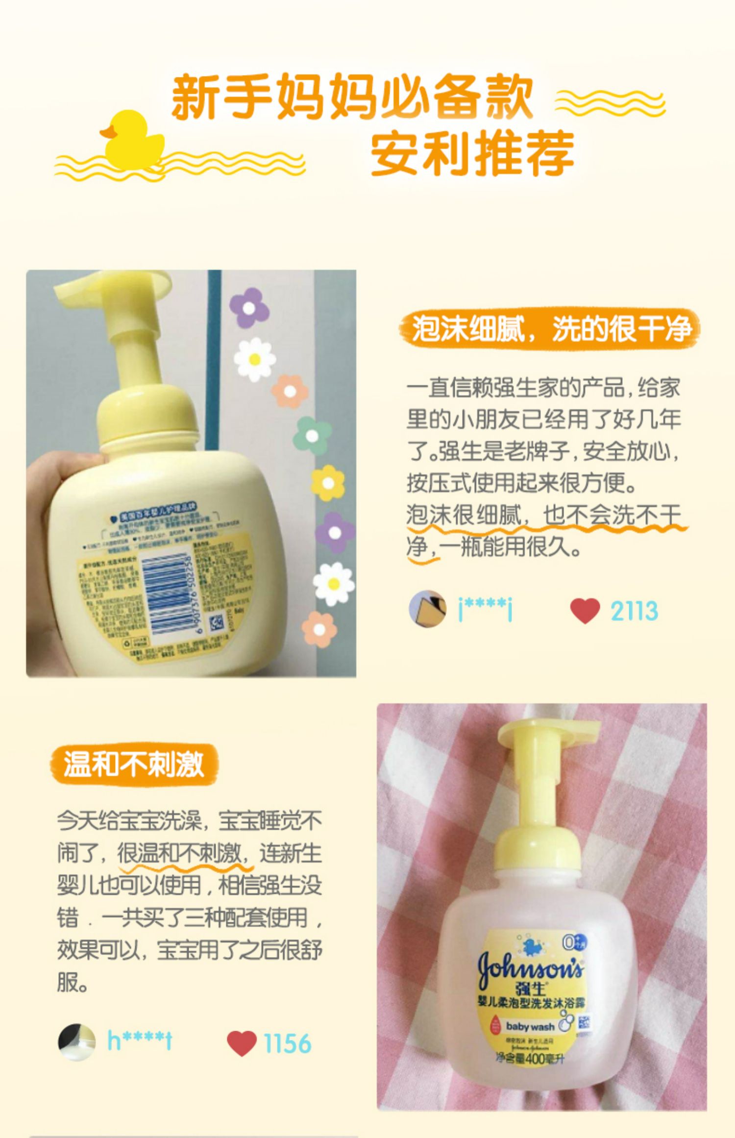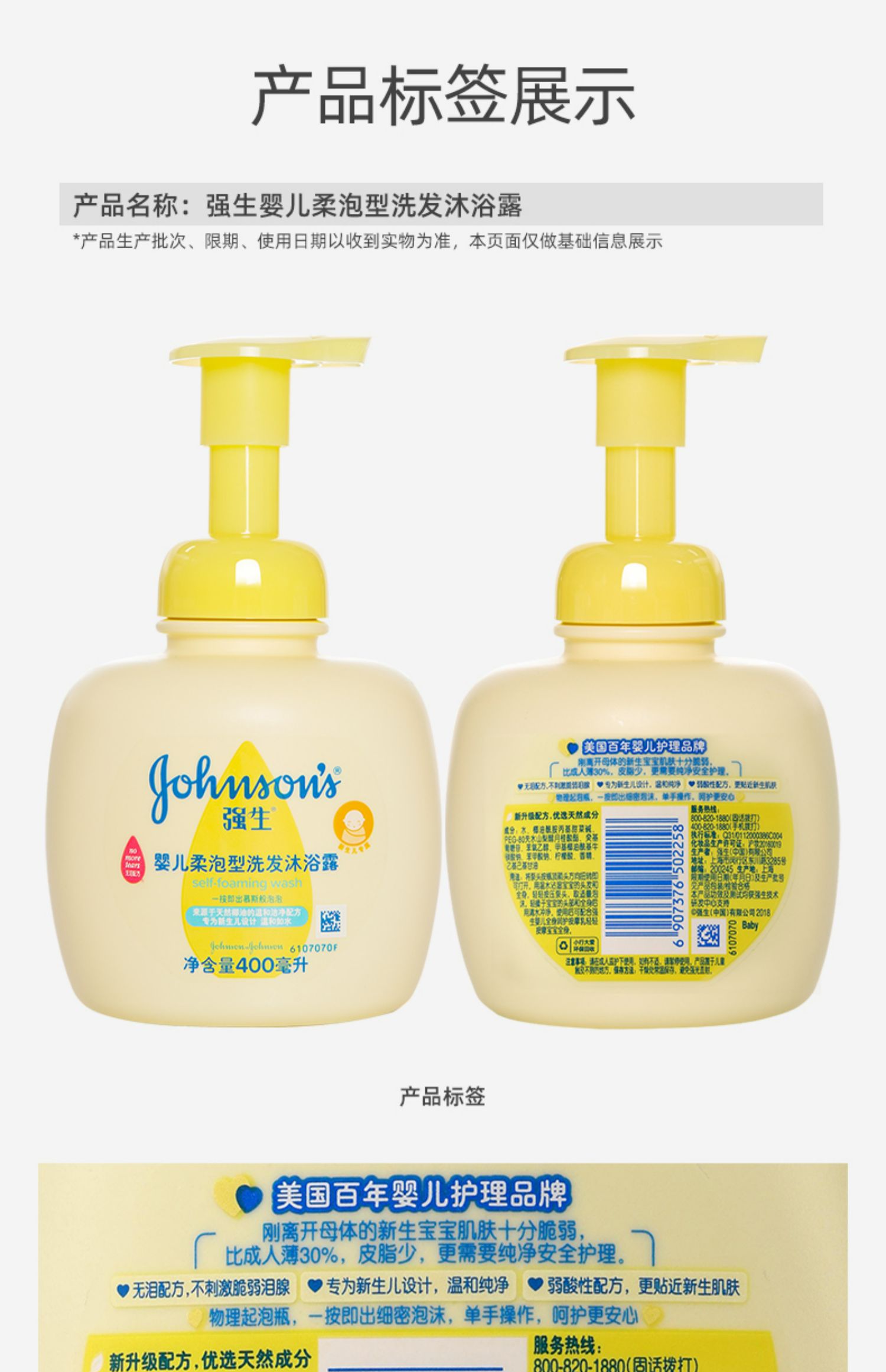 商品名称:强生婴儿柔泡型儿童洗发水沐浴露二合一新生宝宝洗护无泪旗舰正品