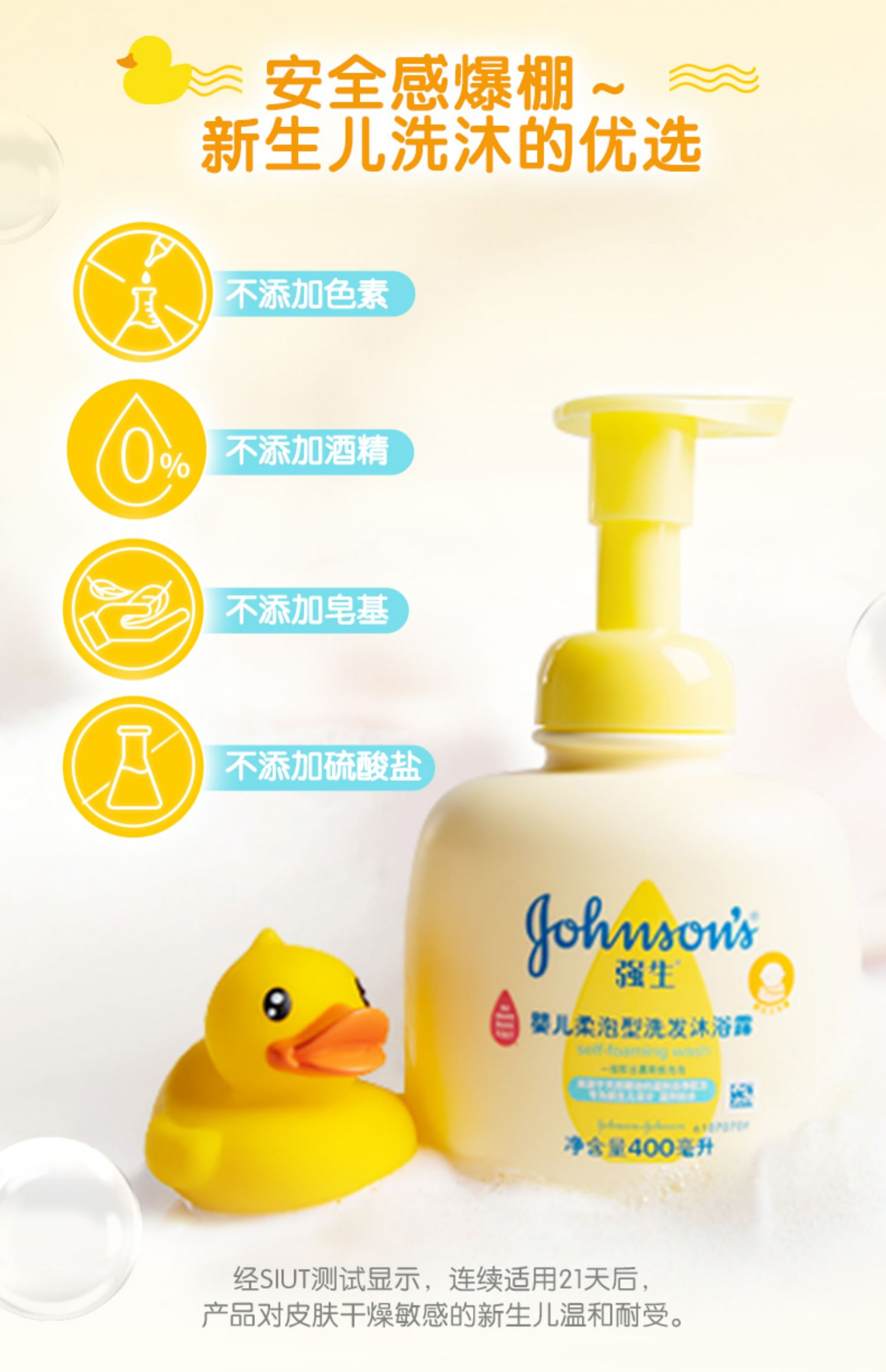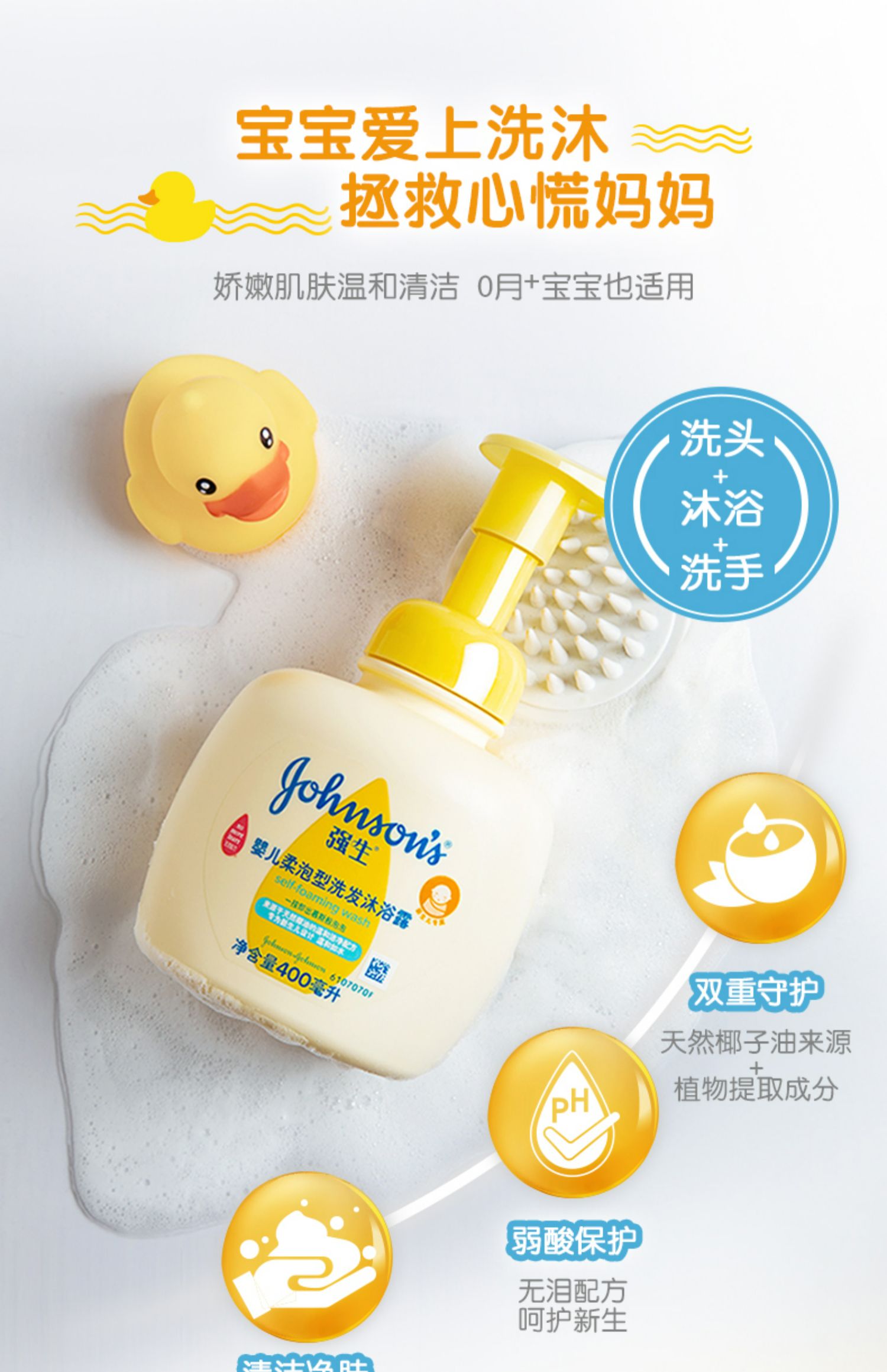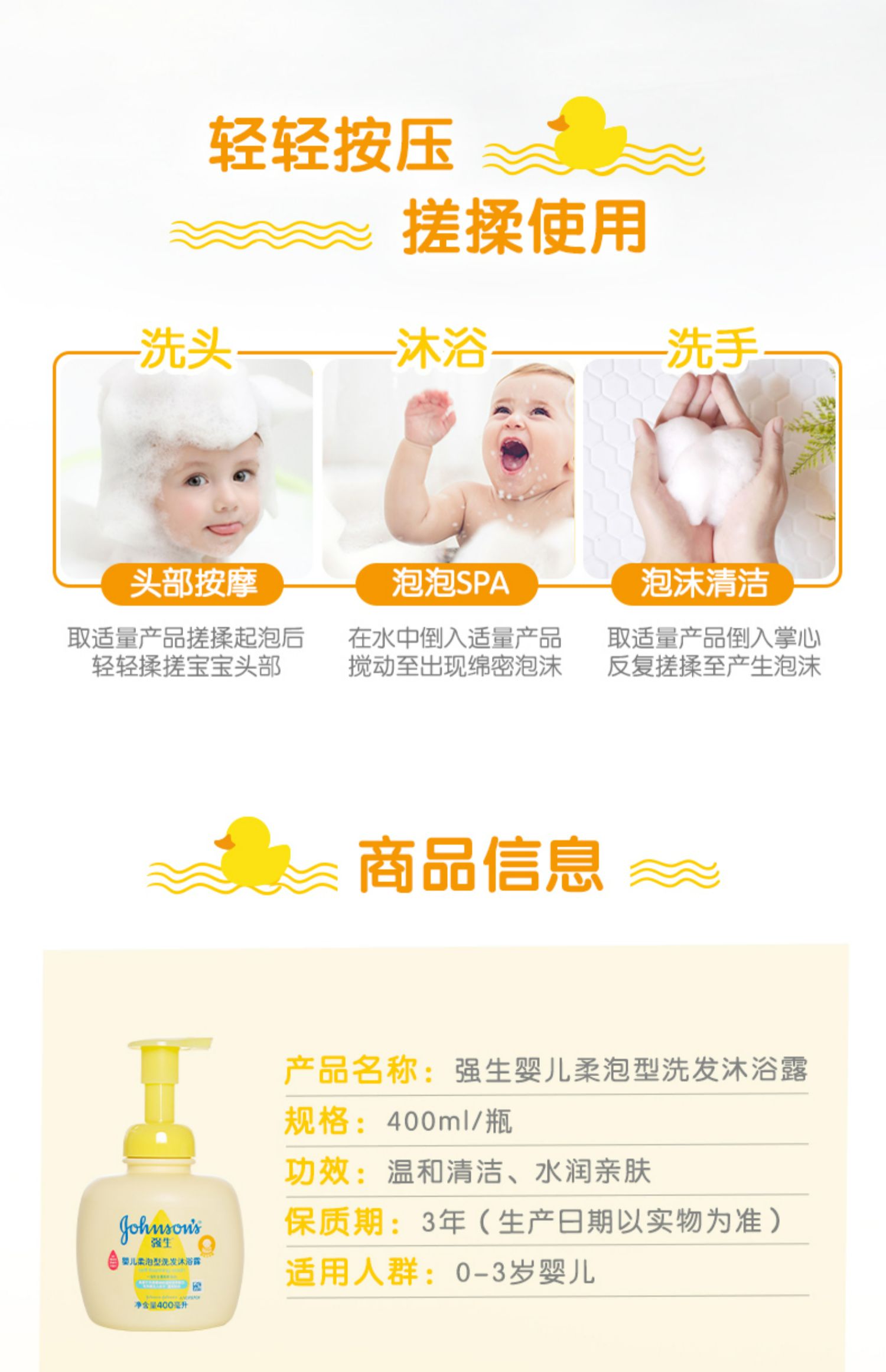 商品介绍:强生婴儿柔泡型洗发水沐浴露二合一400ml