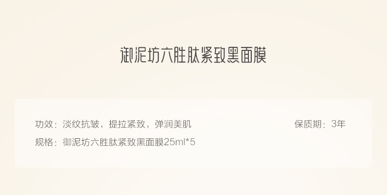 商品介绍:御泥坊六胜肽抗皱面膜紧致淡纹面贴20片