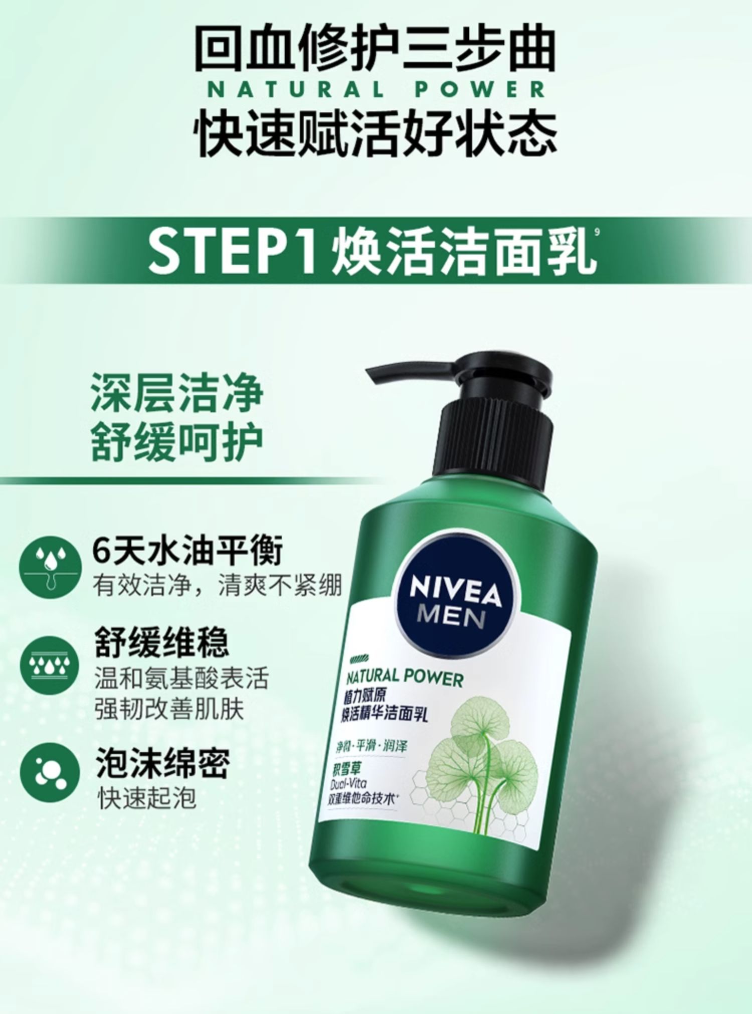 商品介绍:【即刻加购】妮维雅男士专用积雪草护肤套装