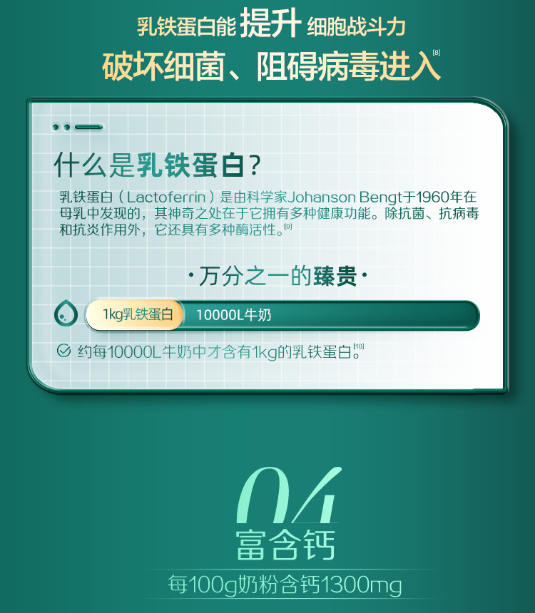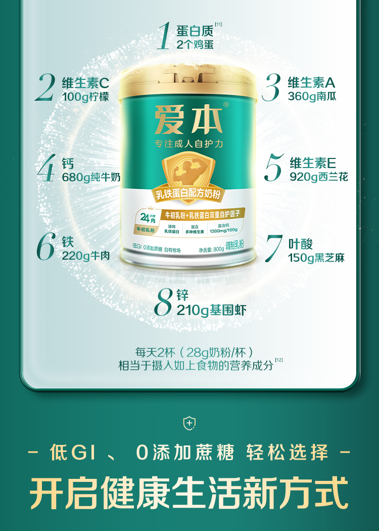 商品介绍:【800g*4罐】飞鹤爱本乳铁蛋白成人奶粉