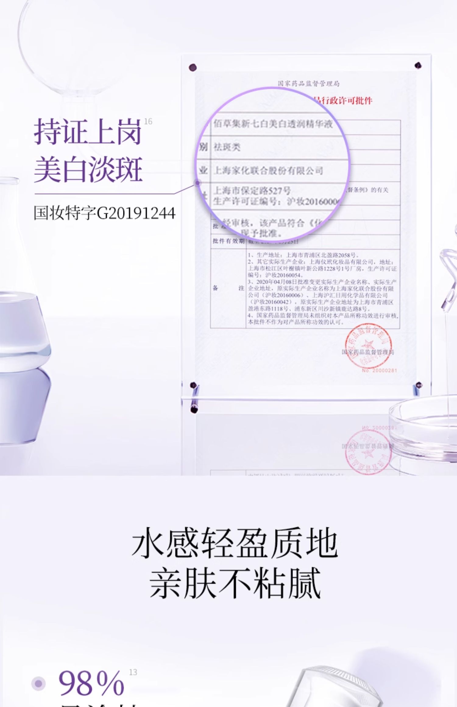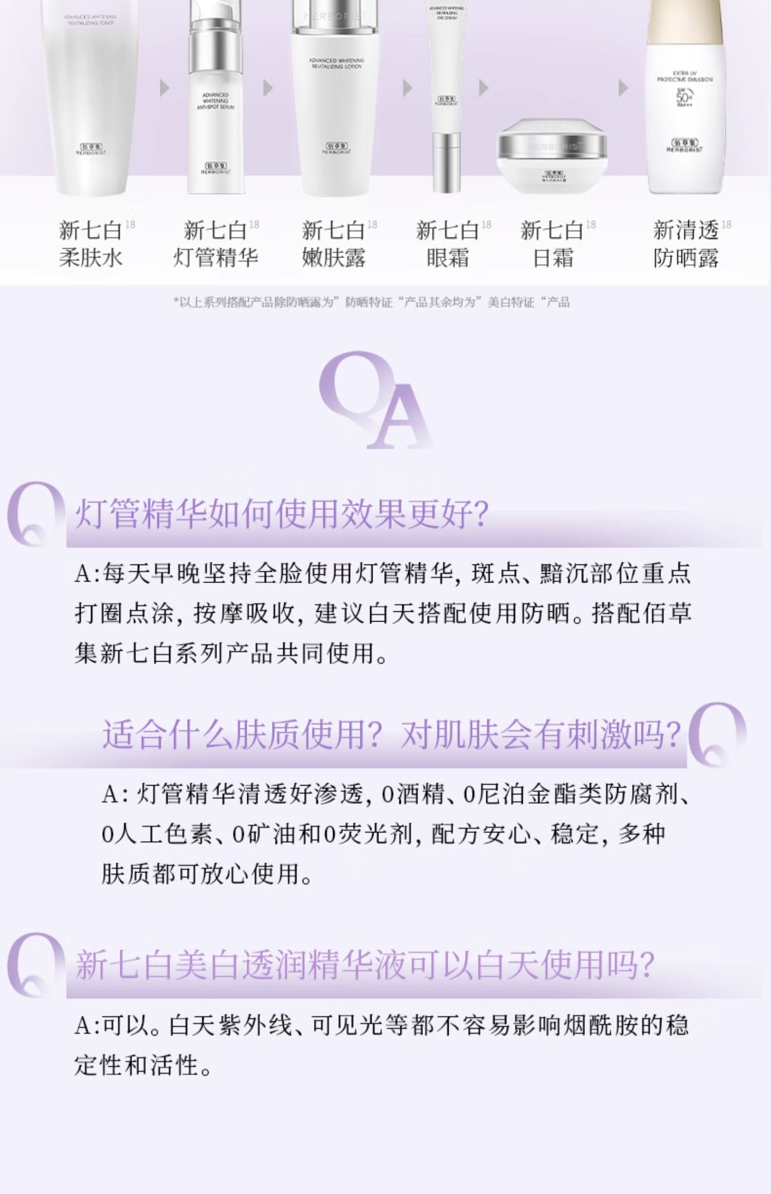商品介绍:【特证美白】佰草集新七白灯管精华液美白