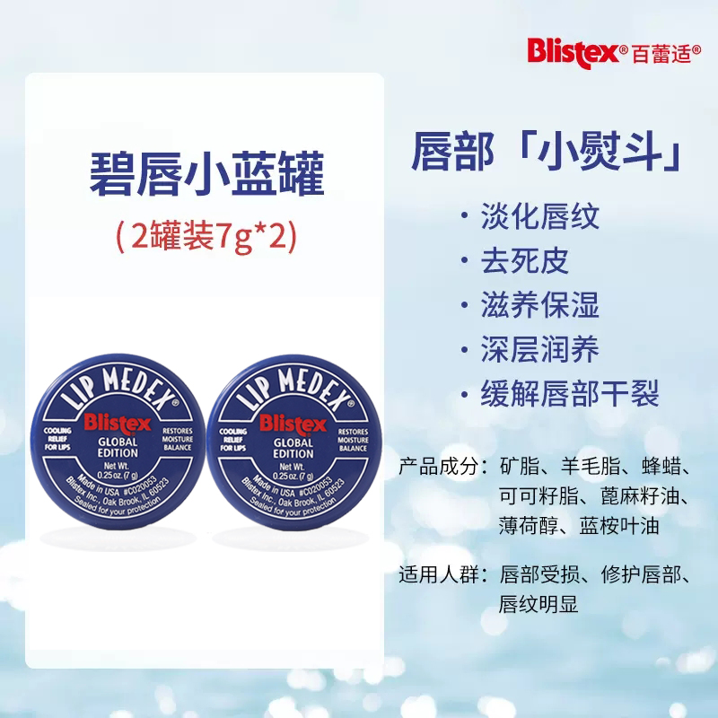 商品介绍:Blistex/百蕾适润唇膏碧唇小蓝罐7g×2罐