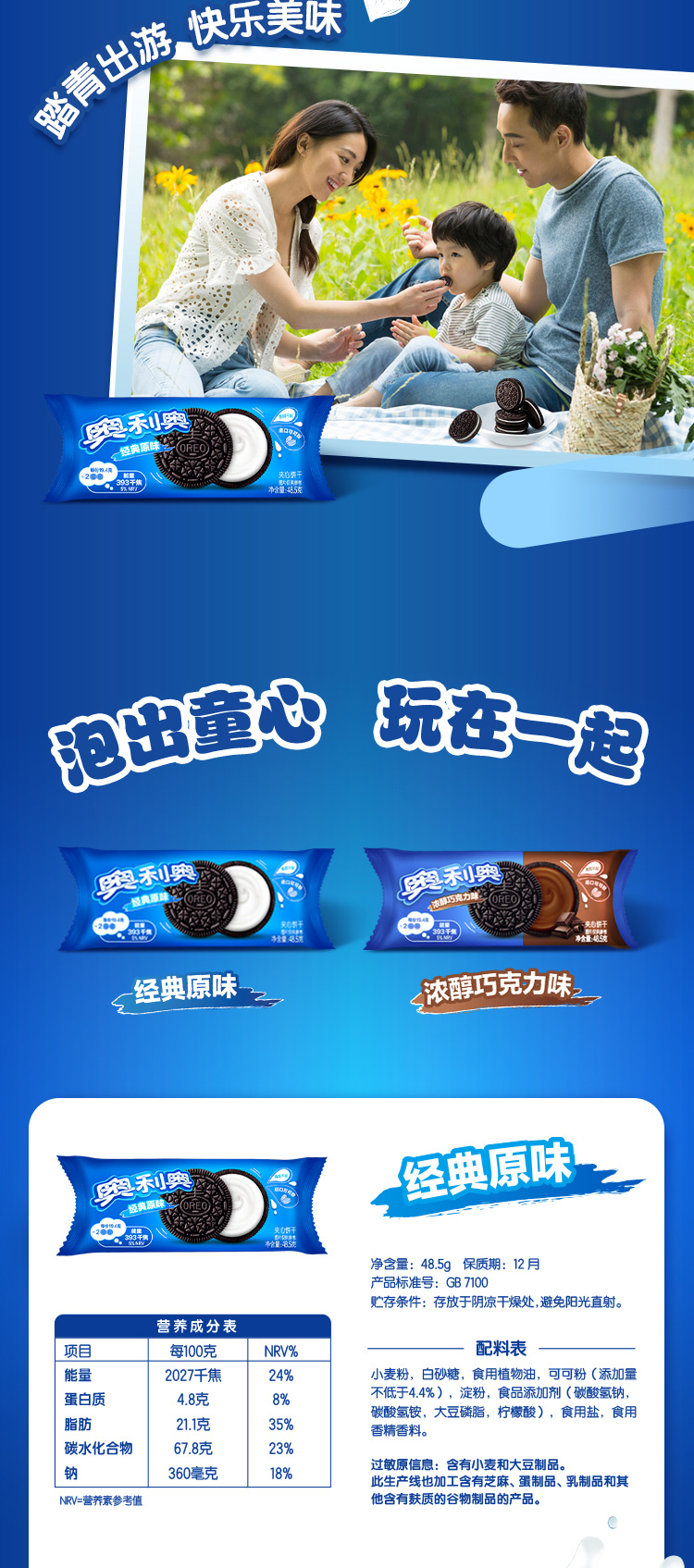 商品名称:【包邮】奥利奥夹心饼干原味巧克力味48.5g*16包共776g休闲零食