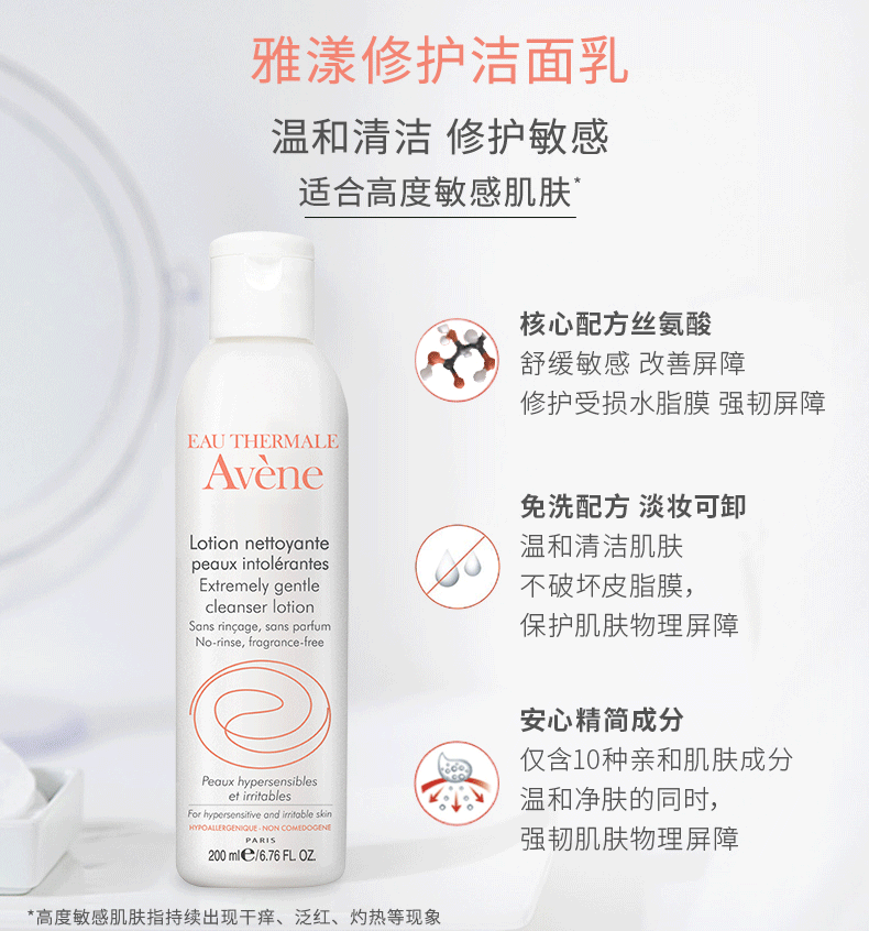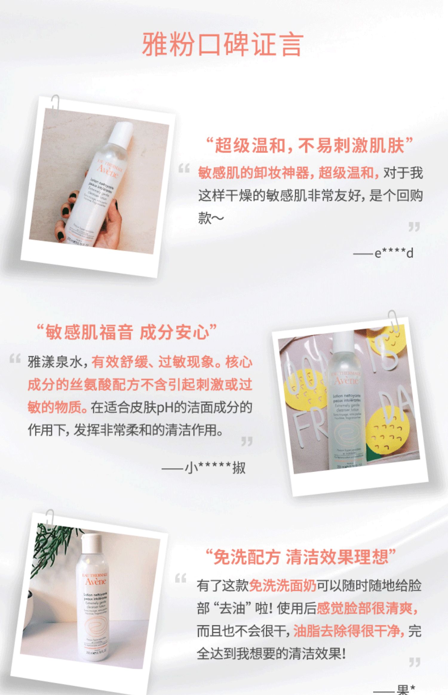 商品名称:【抢3件88折】雅漾专研温和洁面乳深层清洁0皂基敏肌洗面奶avene