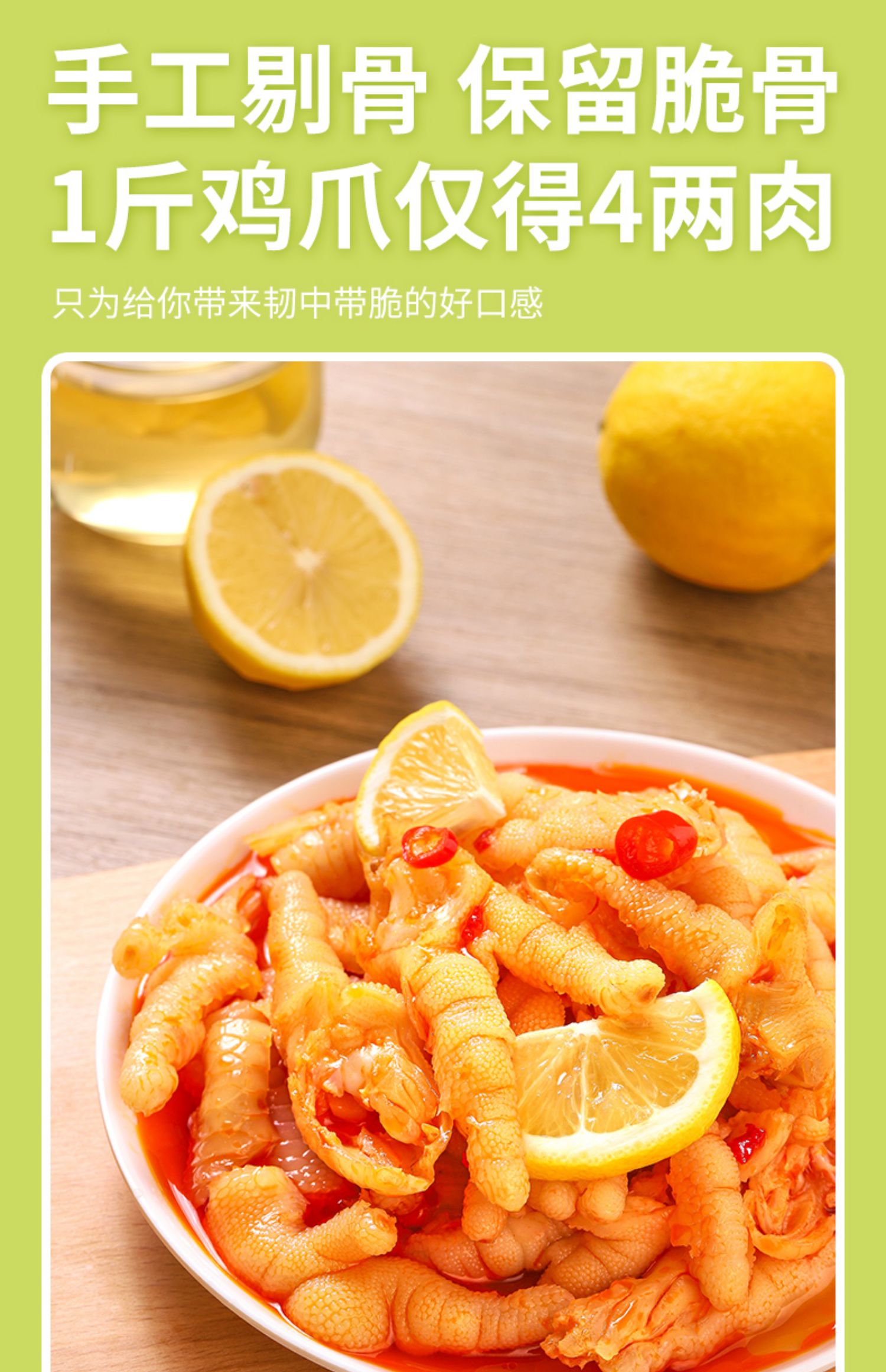 商品介绍:精武柠檬酸辣去骨鸡爪1000g