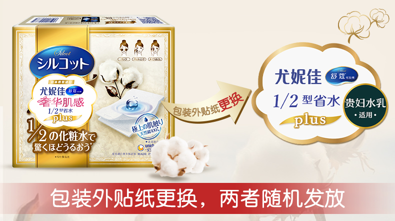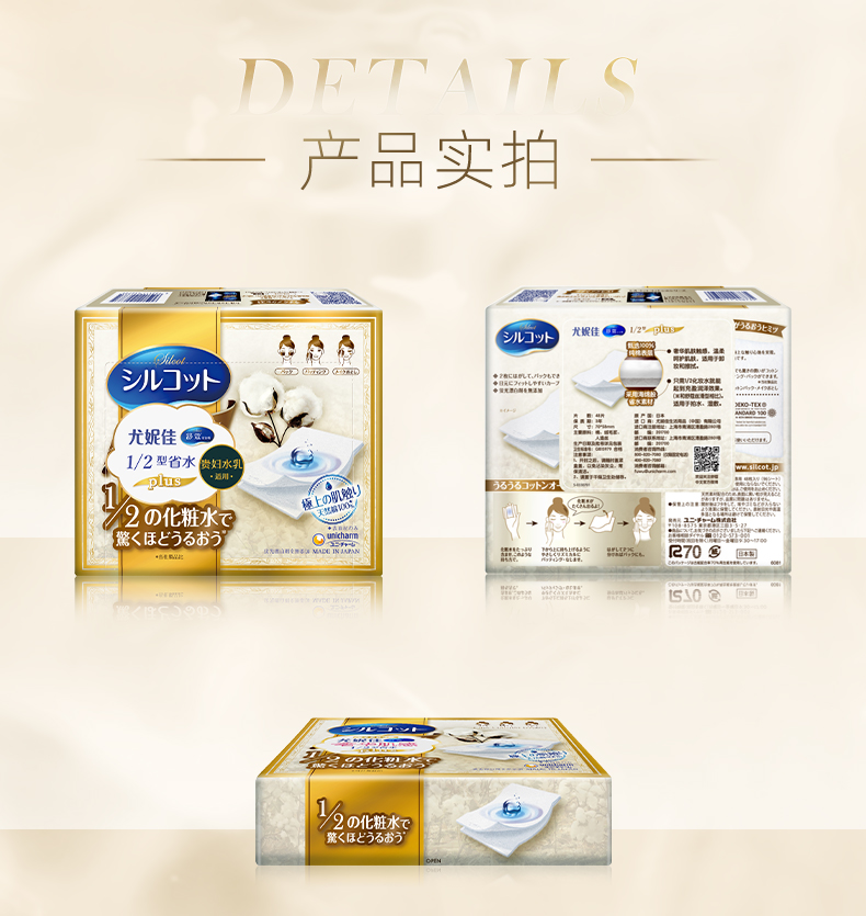 商品名称:尤妮佳舒蔻金盒 1/2省水Plus化妆棉 水乳湿敷补水卸妆 36片*3盒