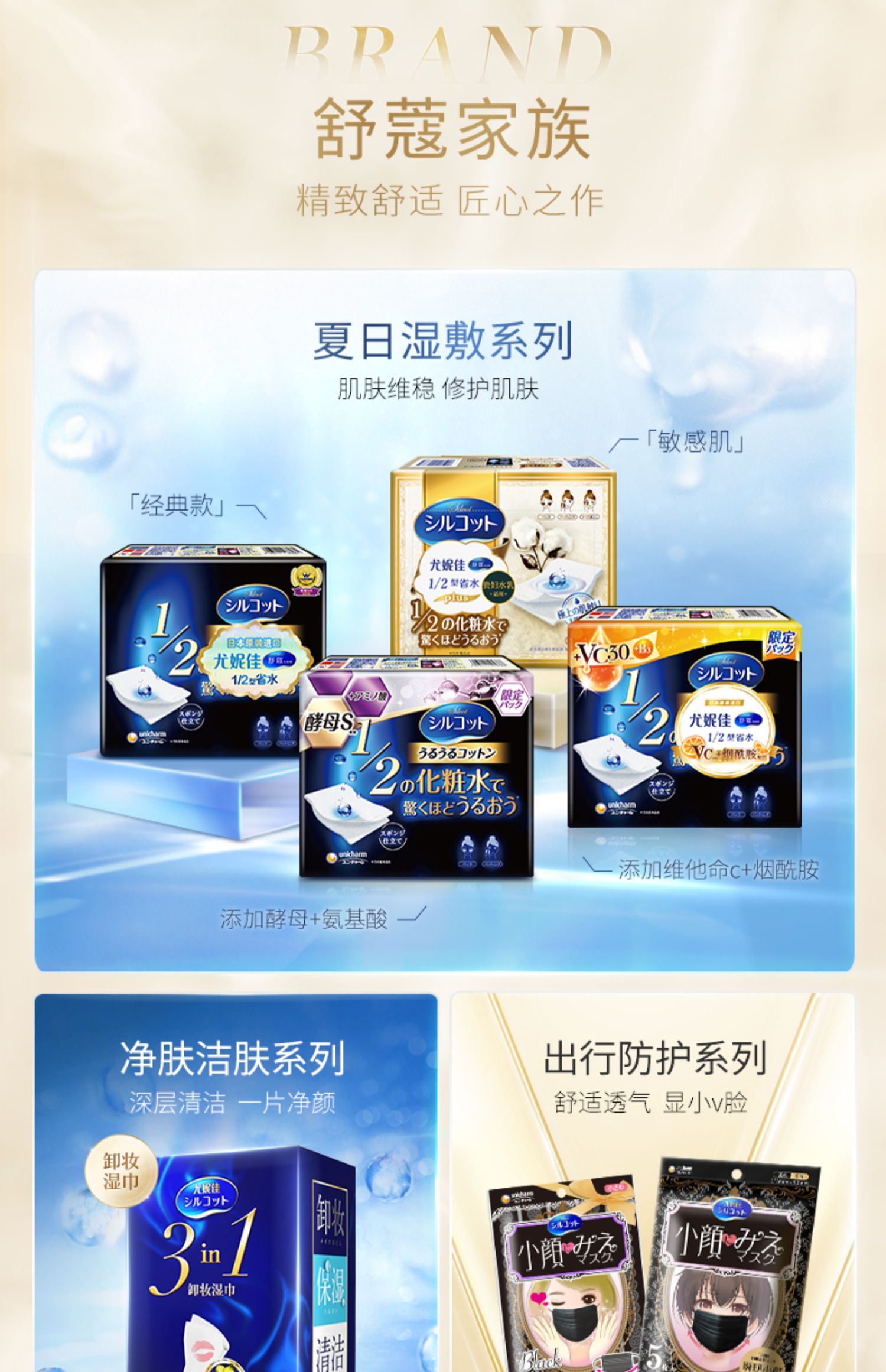 商品介绍:尤妮佳【舒蔻】金盒1/2省水Plus化妆棉