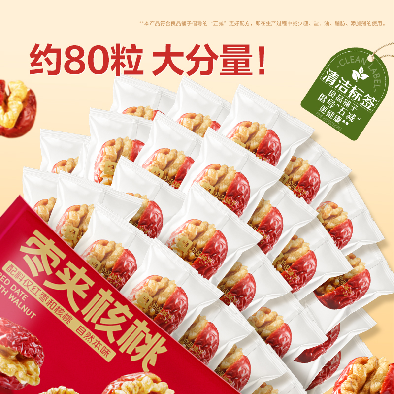 商品介绍:百补直播14.9【80颗】良品铺子枣夹核桃400g
