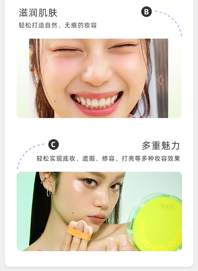 商品简介:凑单到手50.94左右,【3款色号可选】原装进口!一点即遮,水润不拔干,持妆防晒,洋甘菊修复、积雪草抵御、烟酰胺提亮,让你将遮瑕跟养肤进行到底~气垫上妆快,早八党冲!