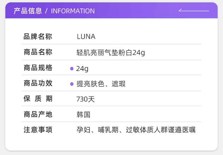 商品介绍:LUNA爱敬轻肌亮丽气垫bb霜