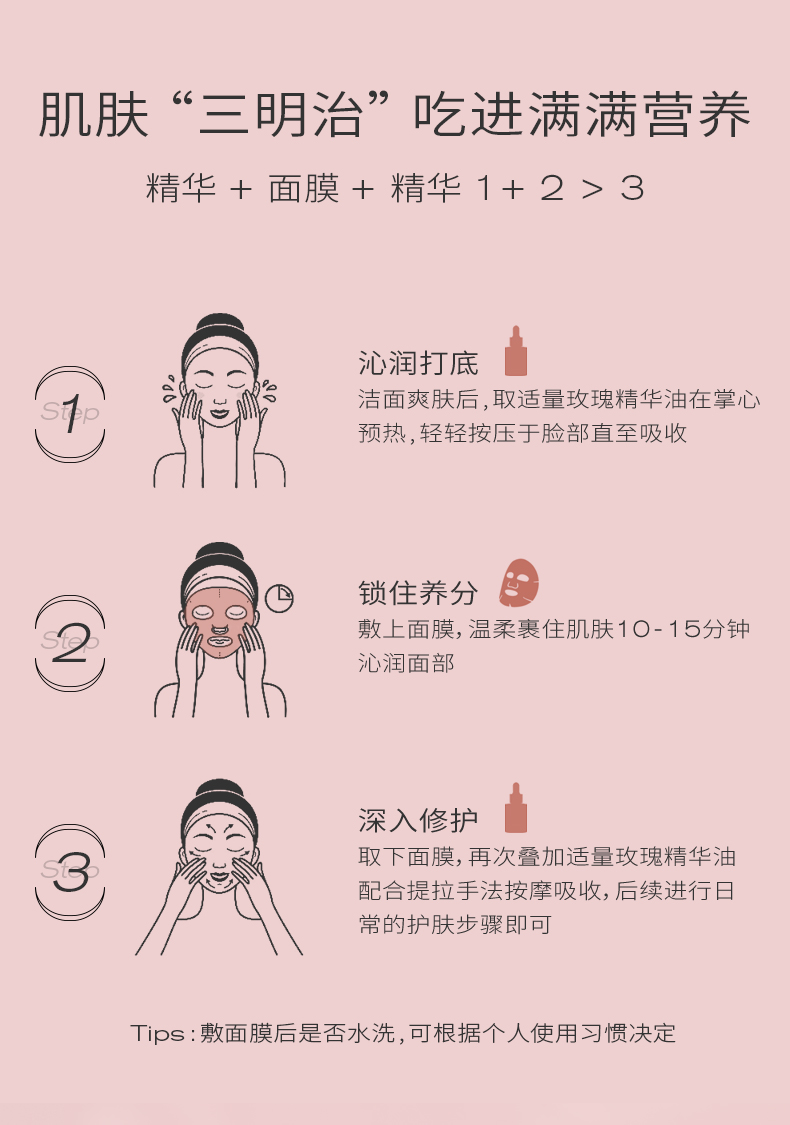 商品介绍:PMPM玫瑰沁透盈润精华面膜女补水保