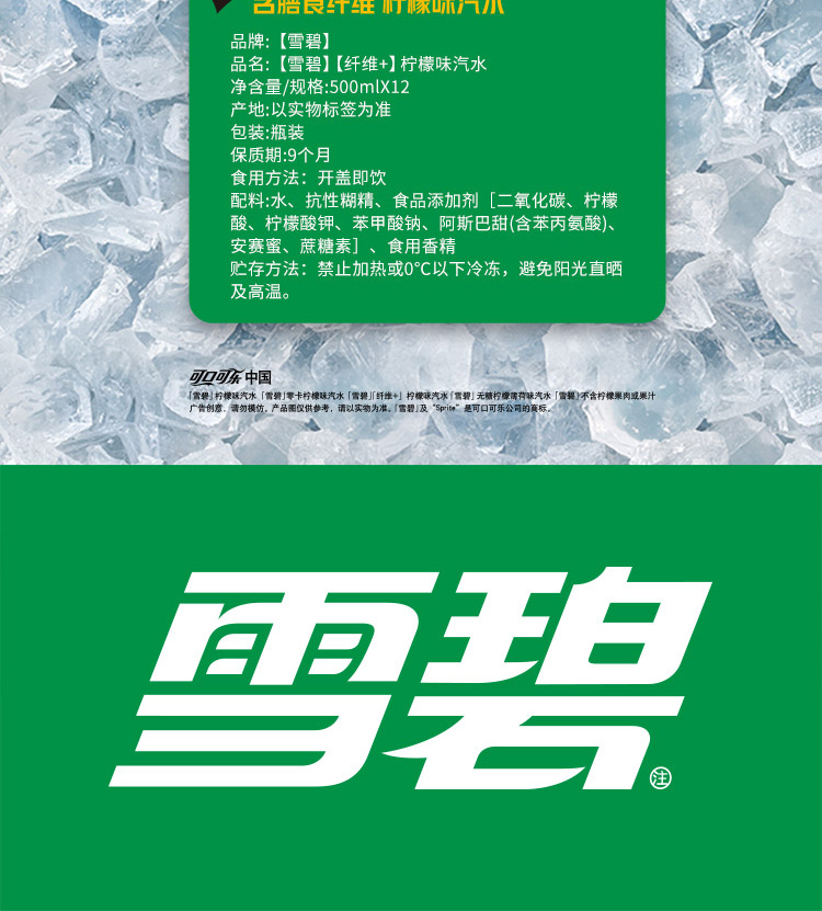 商品介绍:周杰伦张艺兴代言无糖雪碧纤维+500mlx12瓶