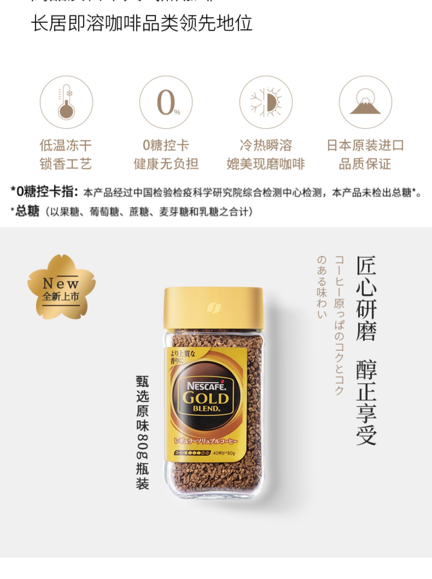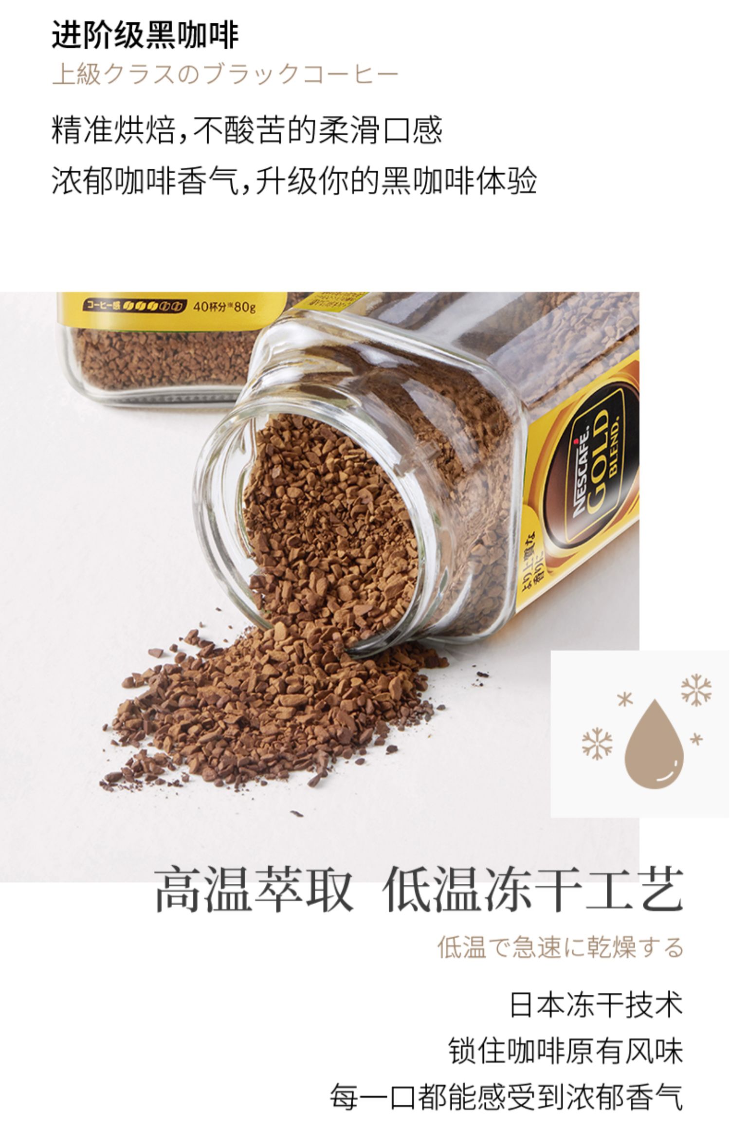 商品名称:雀巢咖啡进口金牌速溶纯黑咖啡美式冻干冷萃咖啡