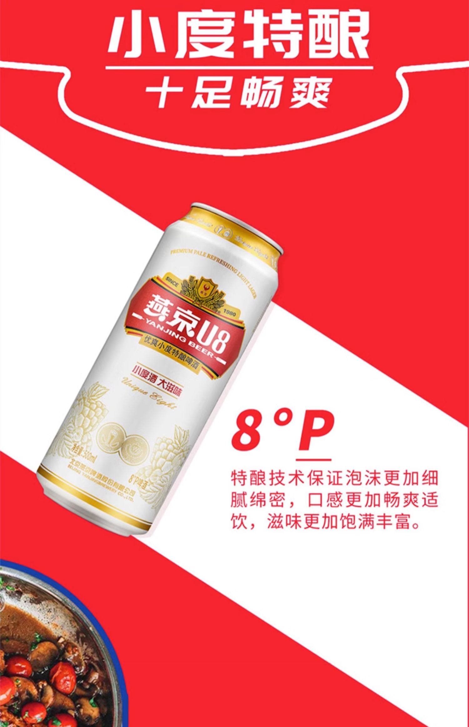 商品介绍:燕京啤酒燕京小度酒U8啤酒500ml*24瓶