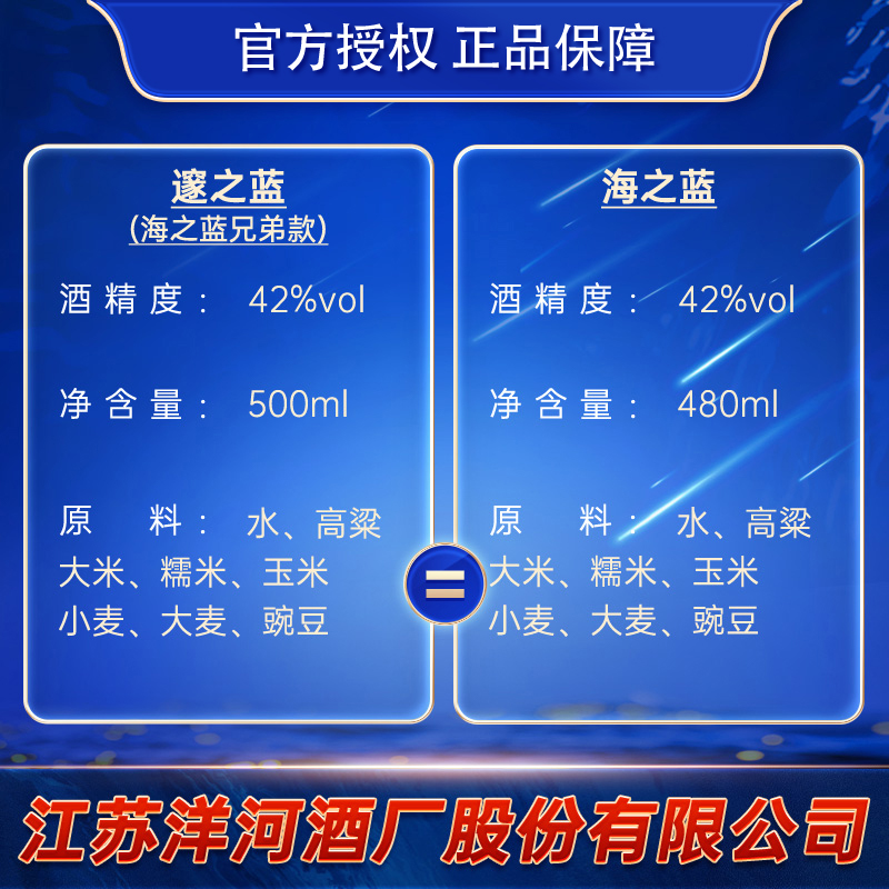 商品介绍:洋河蓝色海之蓝兄弟款邃之蓝42度500mL*2瓶