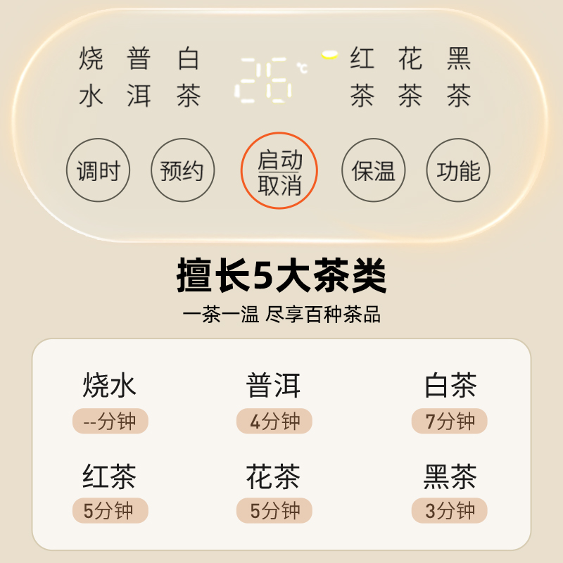 商品简介:【满300-40凑单到手93.8】微电脑精准控温,6大专业菜单,24H预约+保温,高硼硅玻璃壶体,304不锈钢茶篮,高温蒸汽喷淋萃取,过热/干烧自动断电,分离式滤网,茶渣分离,一壶多用