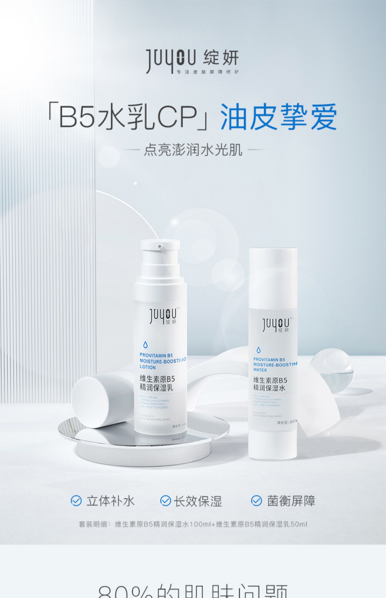 商品介绍:b5绽妍水乳保湿水补水皮肤屏障修护乳