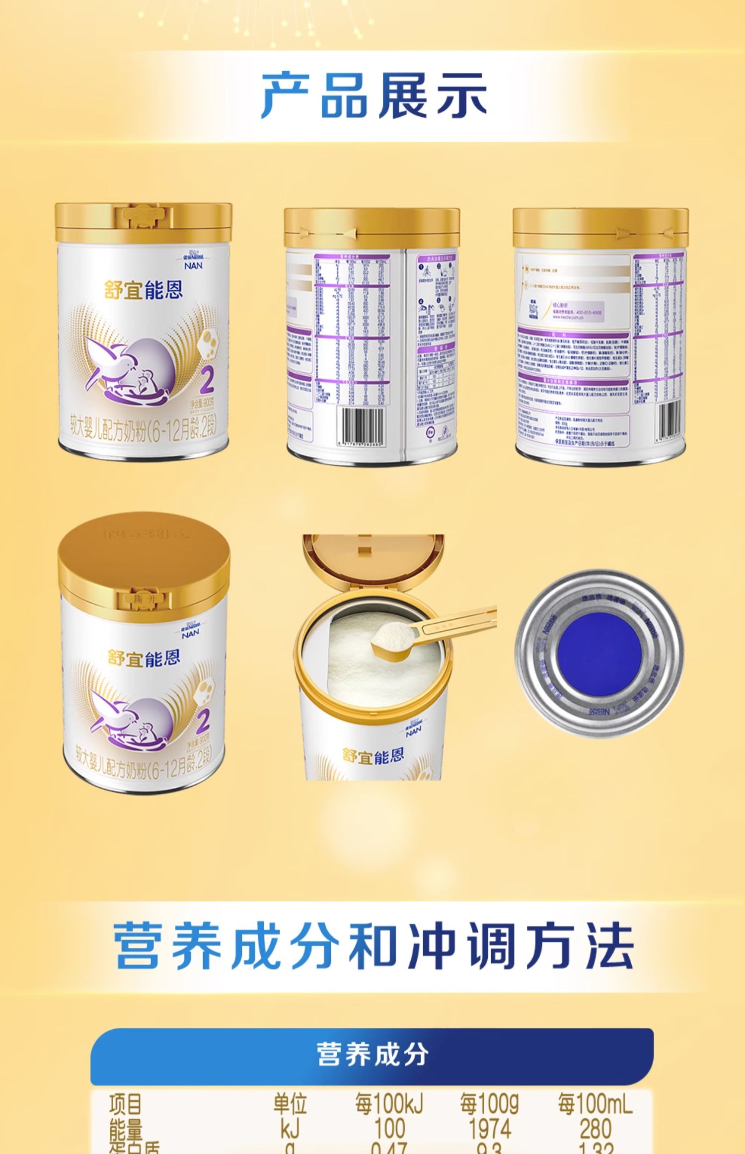 商品介绍:【雀巢】舒宜能恩2段A2奶源奶粉900g