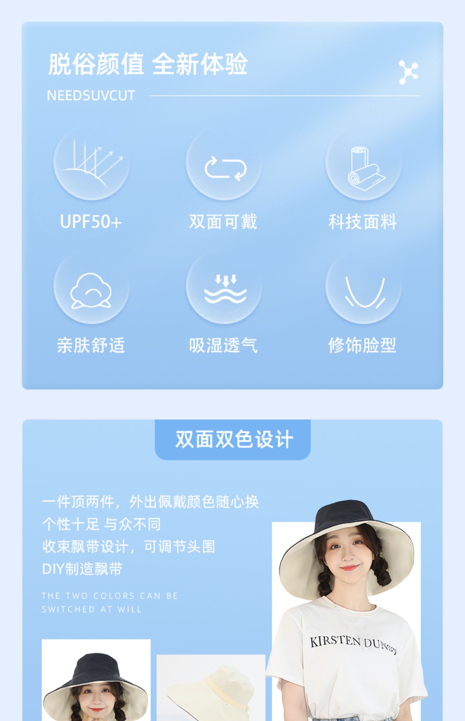 商品介绍:needsuvcut防晒帽女加大檐防紫外线
