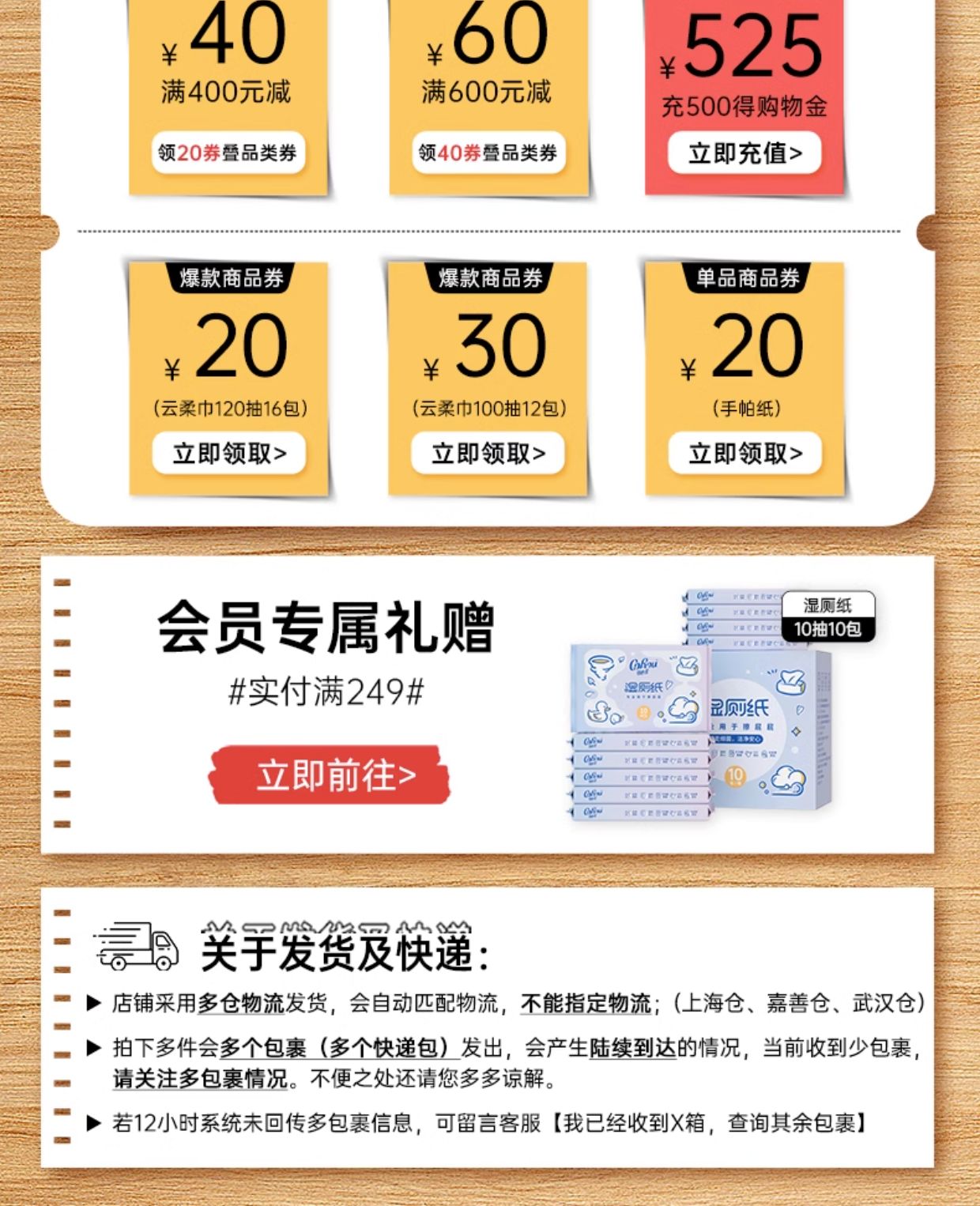 商品名称:可心柔婴儿保湿柔纸巾干湿两用抽纸新生儿专用100抽24包