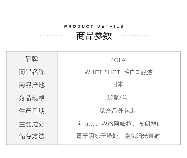 商品名称:【自营】日本POLA宝丽美白饮焕白饮30ml*10支3组 效期至25年11月