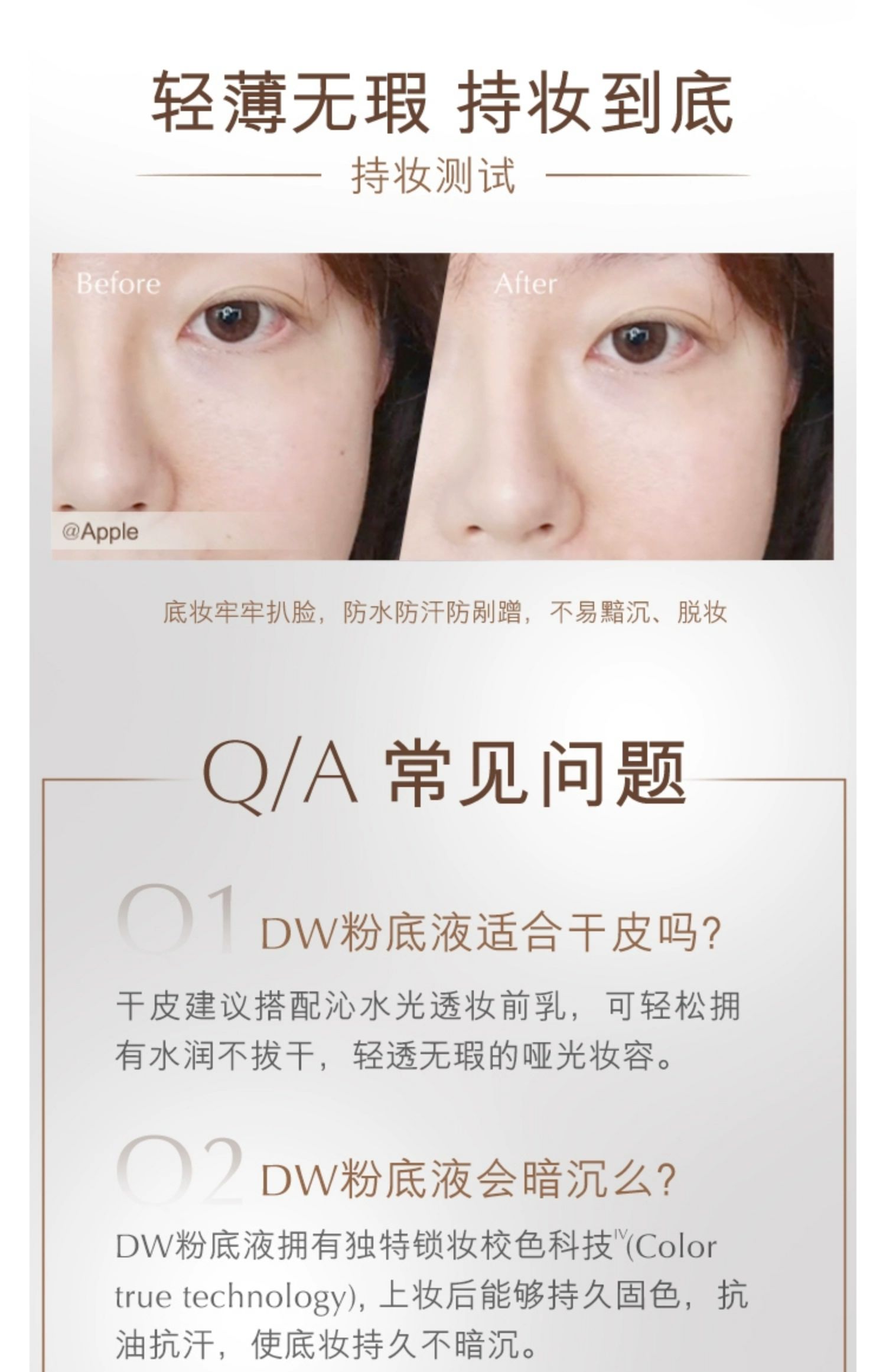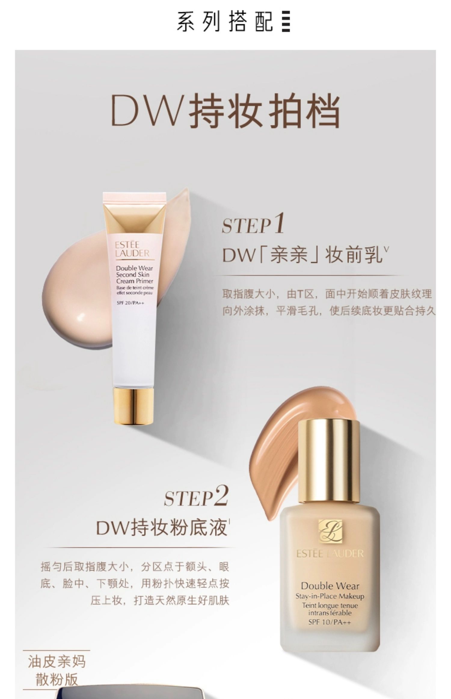 商品简介:满减凑单到手348元~【赠粉底液20ml+妆前乳5ml+泵头】丝芙兰雅诗兰黛DW持妆粉底液,控油持久遮瑕不易脱粉油皮亲妈正品