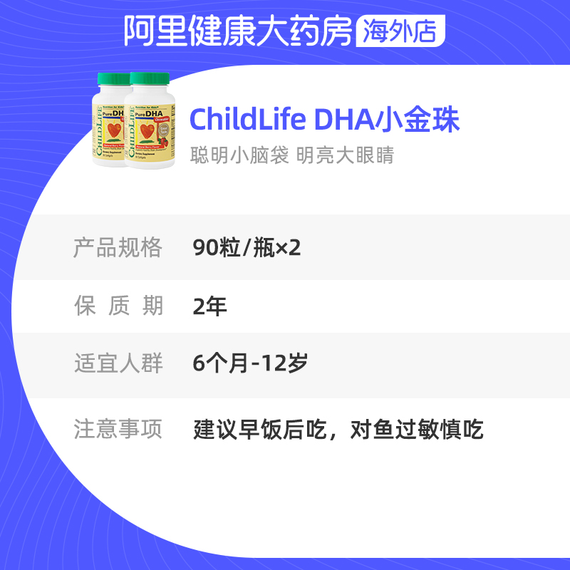 商品名称:ChildLife小金珠DHA*2 婴幼儿童宝宝专用鱼油补脑软胶囊