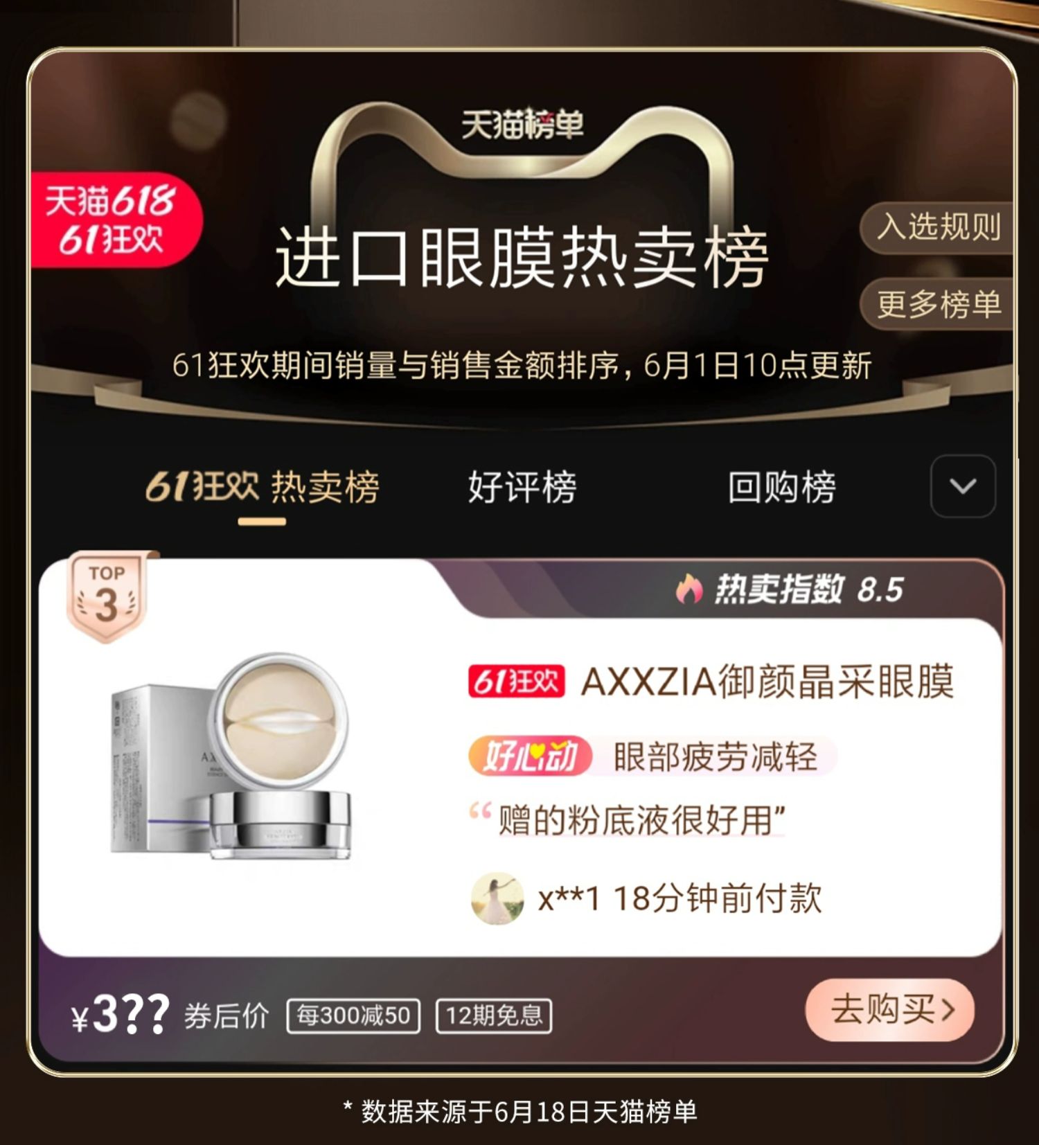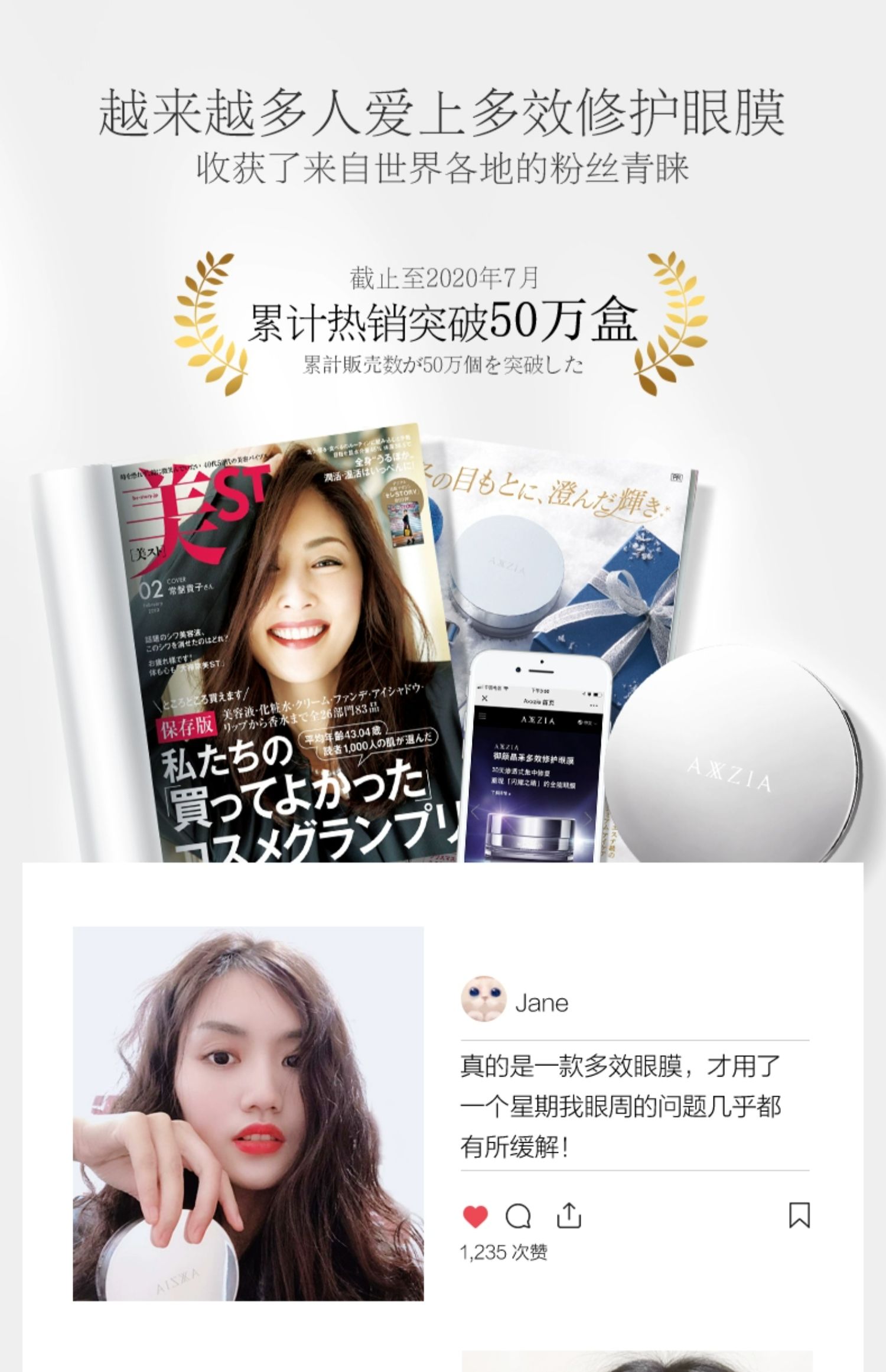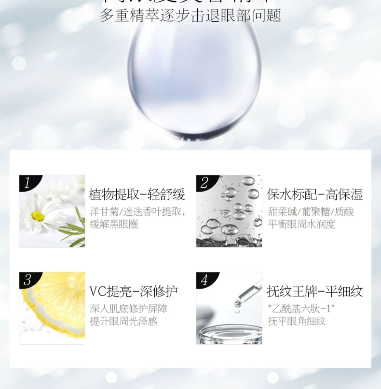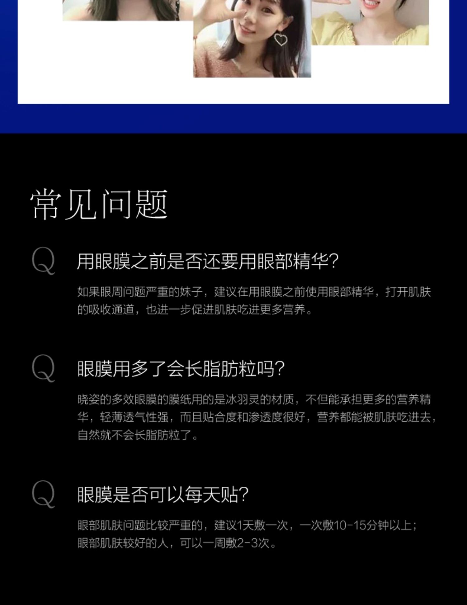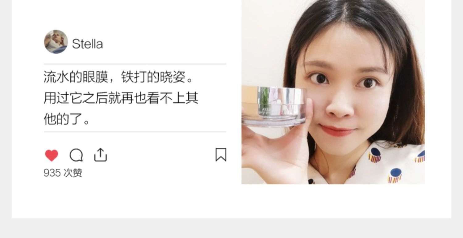 商品简介:每天一敷淡化眼纹,长效补水滋润保湿,紧实眼周,唤起肌肤弹性,温和舒缓,熬夜党必备的贴心眼膜~