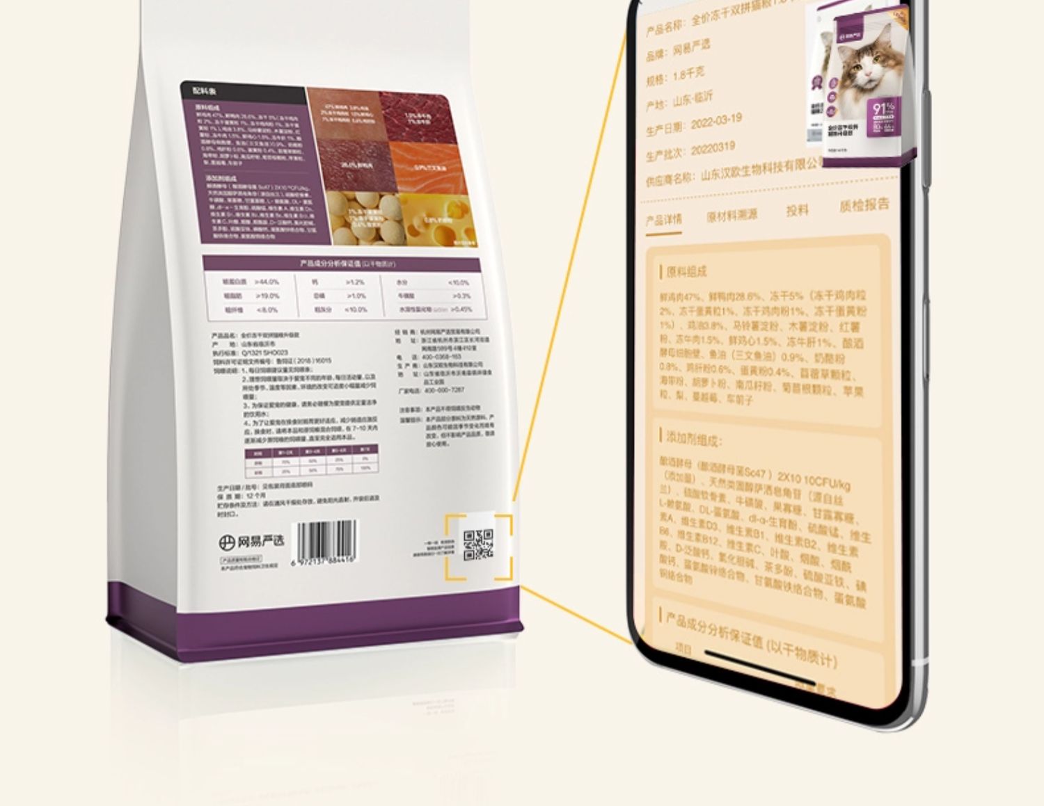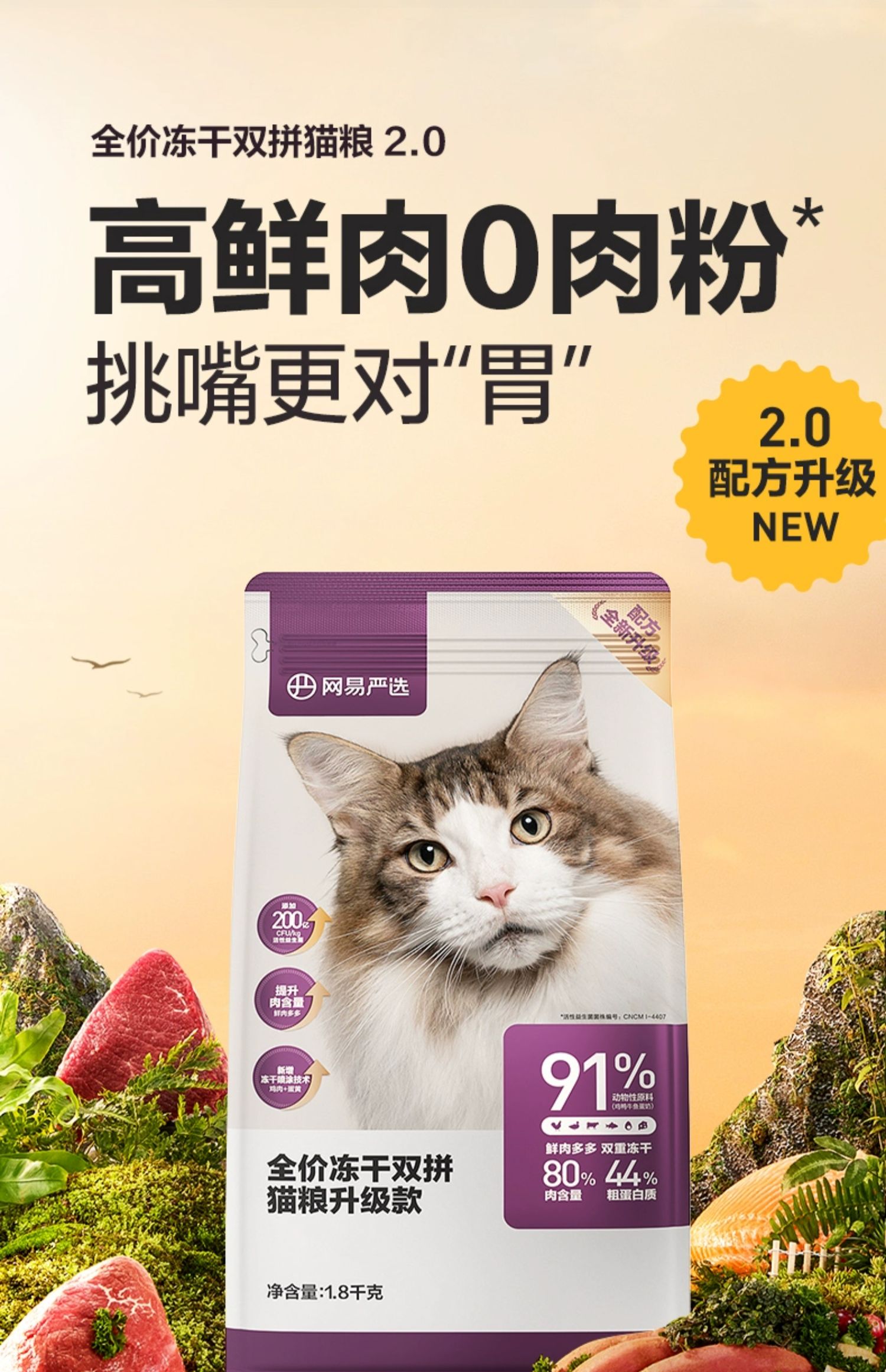 商品介绍:网易严选双拼冻干猫粮1.8kg*4