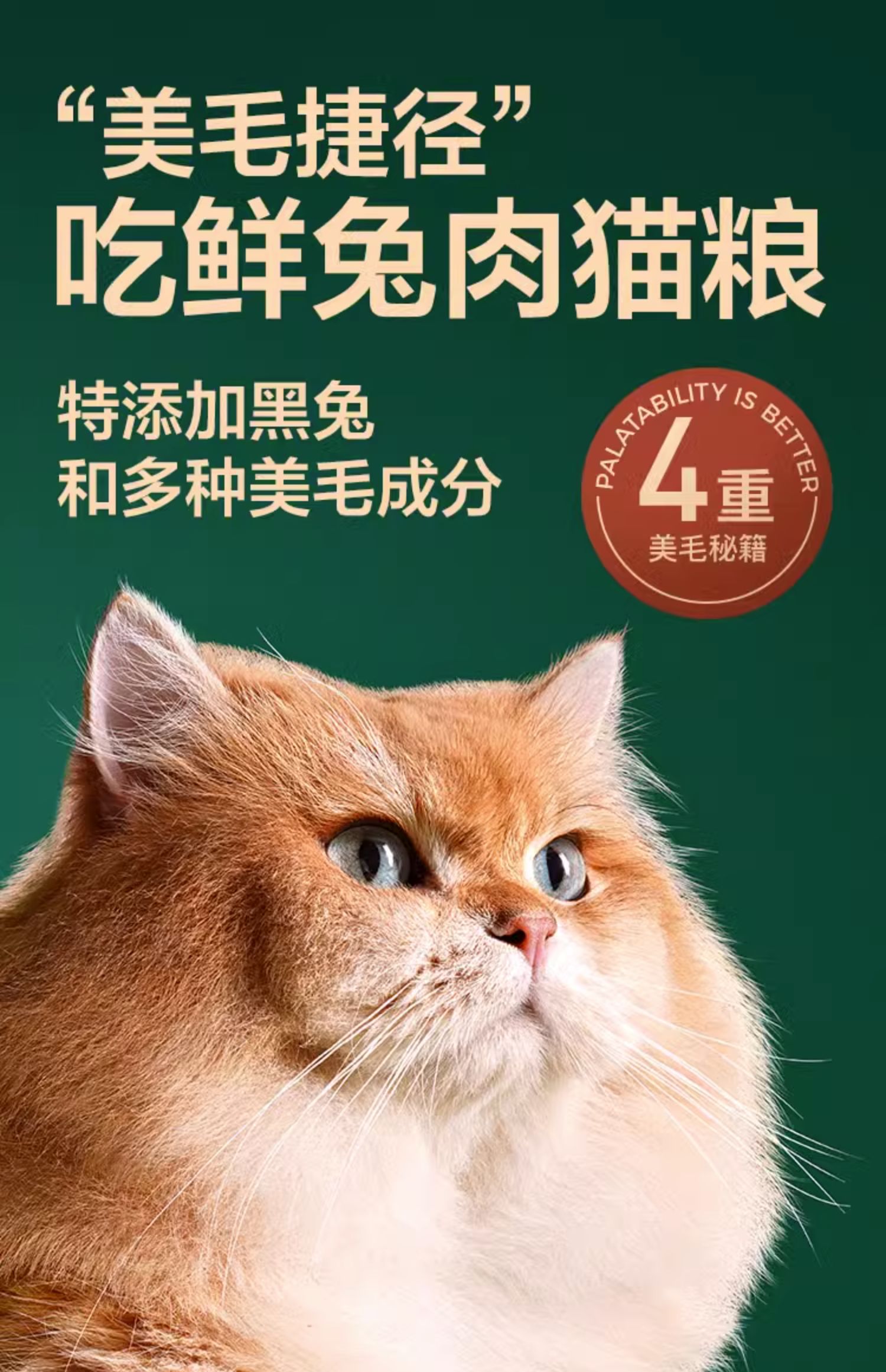 商品介绍:网易天成双拼兔肉猫粮1.8kg*4
