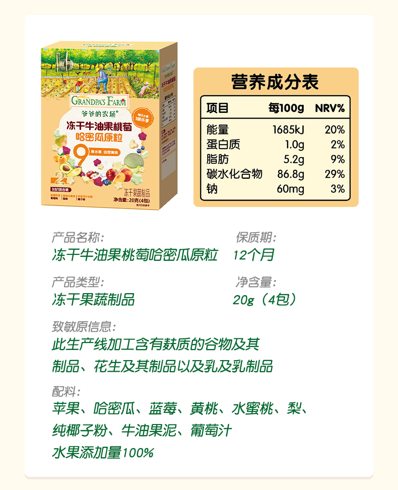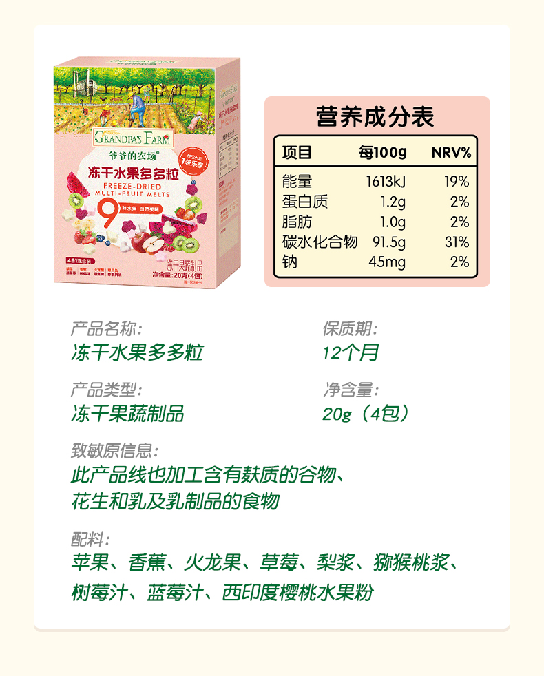 商品名称:爷爷的农场溶豆水果味冻干多多粒儿童营养零食宝宝零食无添加