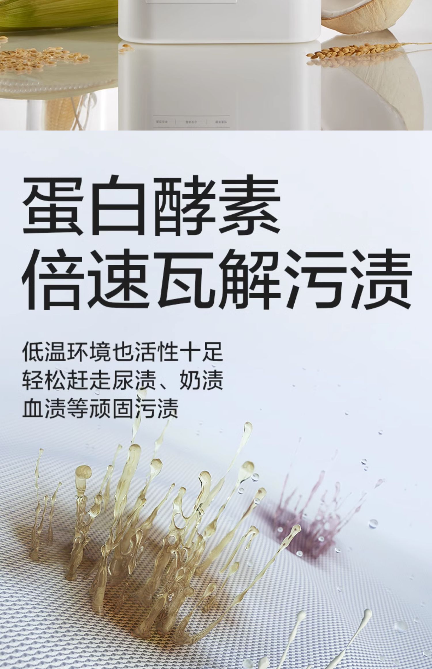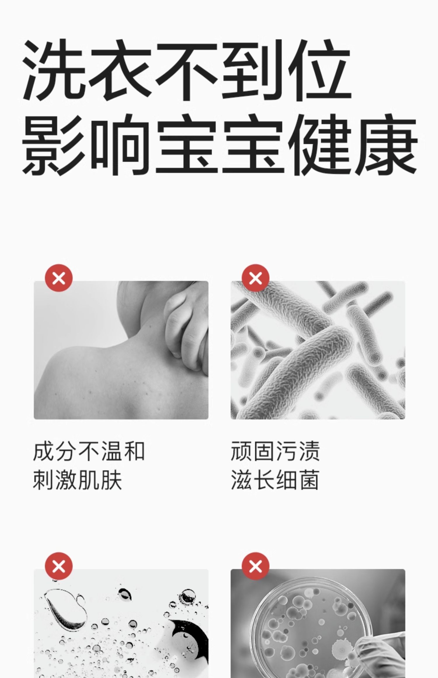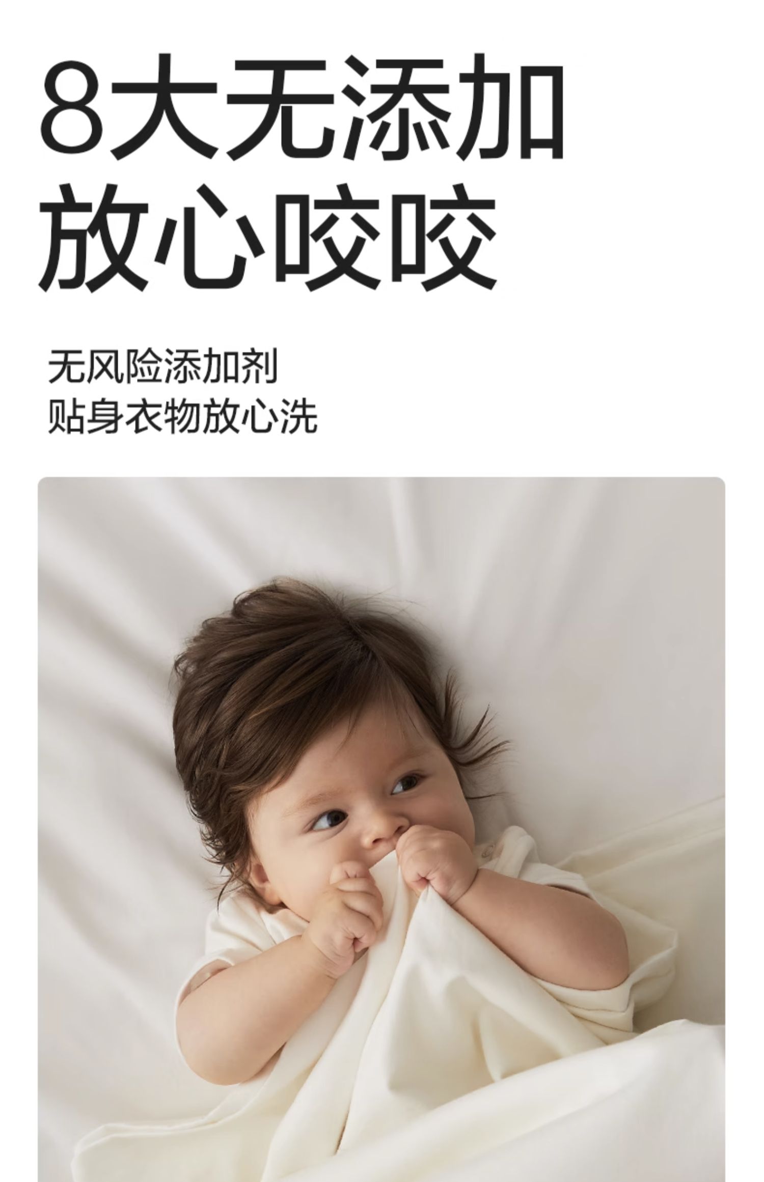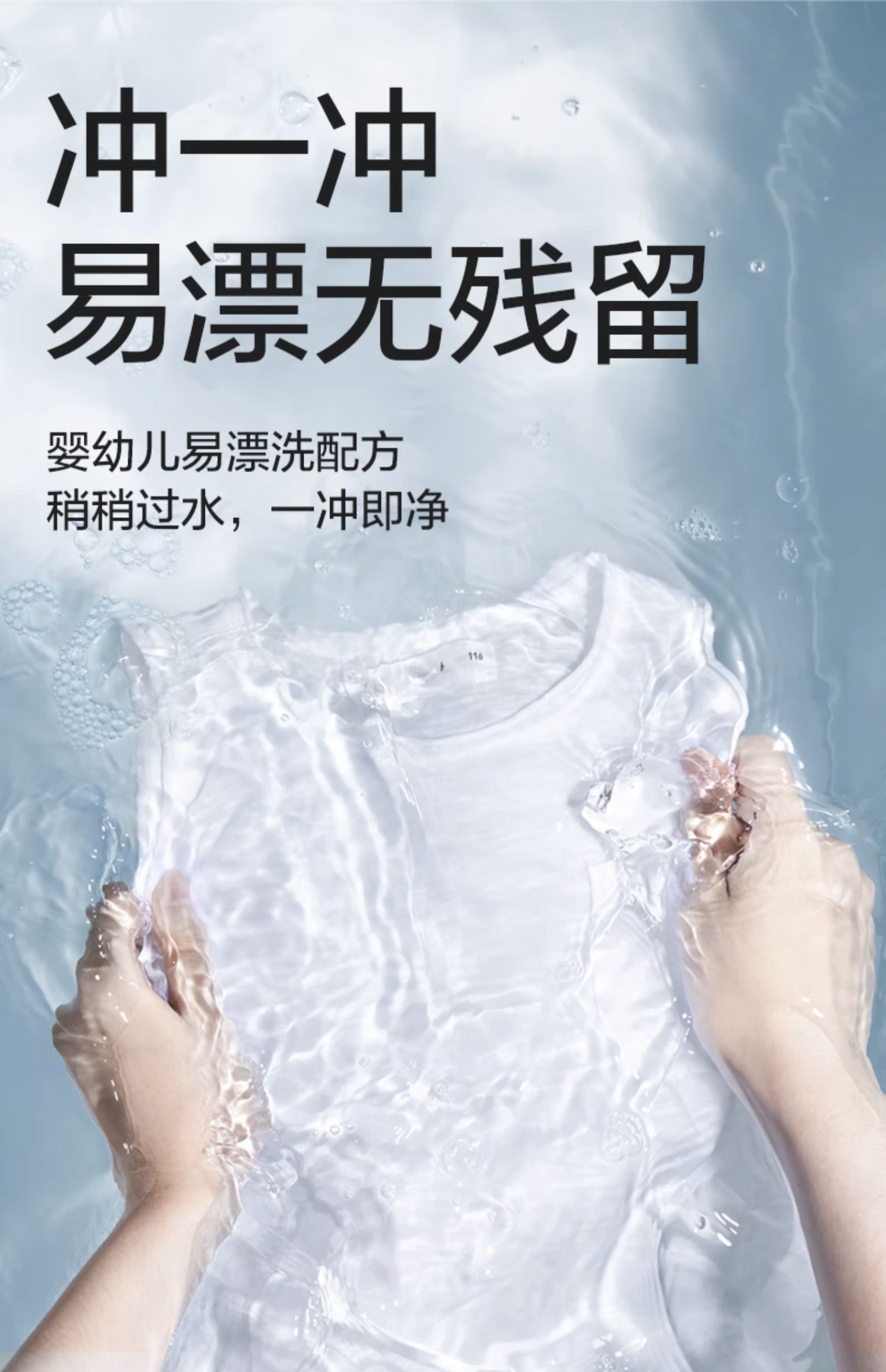 商品简介:长效安全抑菌,保护娇嫩肌肤不过敏,蛋白酵素,倍速瓦解污渍,无风险添加剂,贴身衣物放心洗,婴幼儿易漂洗配方,稍稍过水,一冲即净【赠运费险】